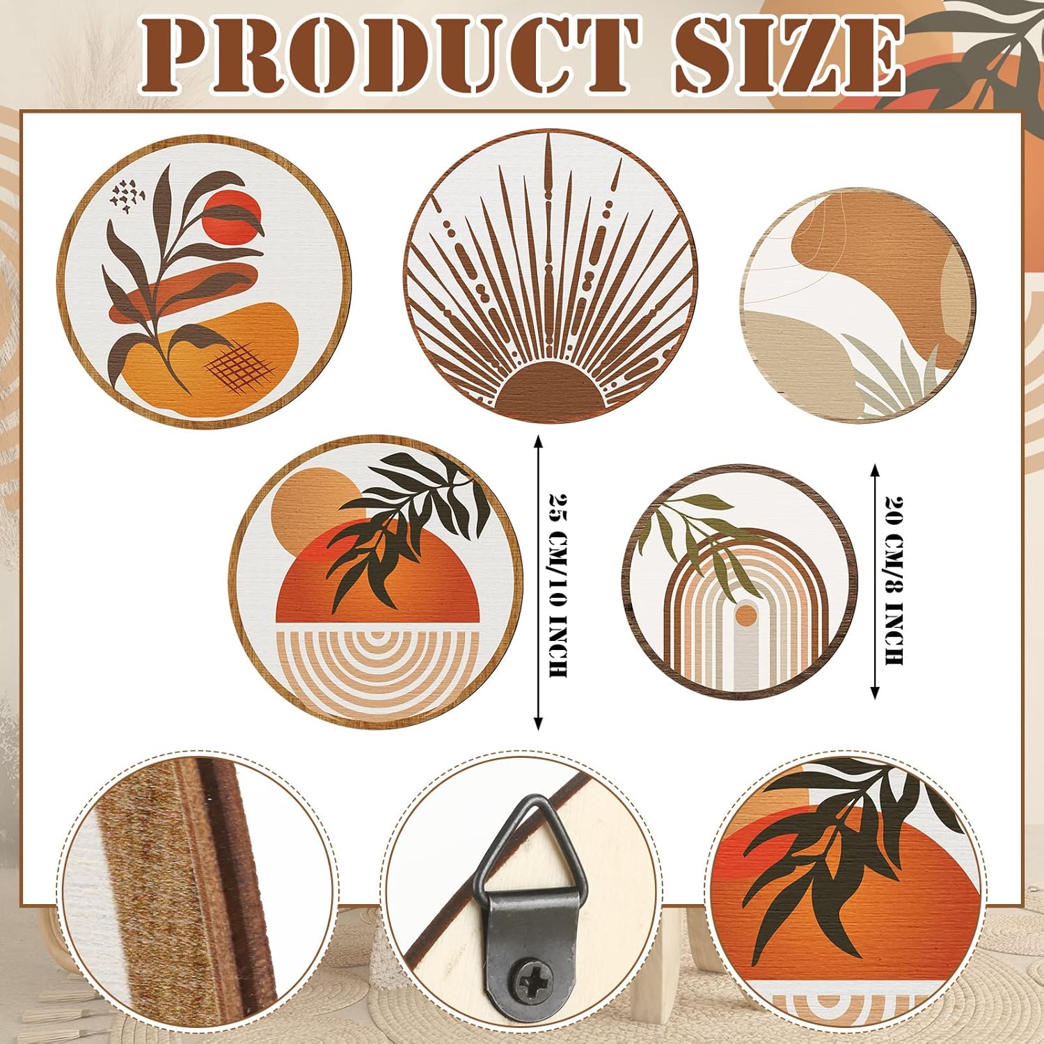 Qunclay 5 Pcs Wall Art Decor Wooden Living Room Wall Decor Bohemian Hanging Farmhouse Geometric 10'' and 8'' Aesthetic Wood Minimalist Posters for Bedroom(Boho)