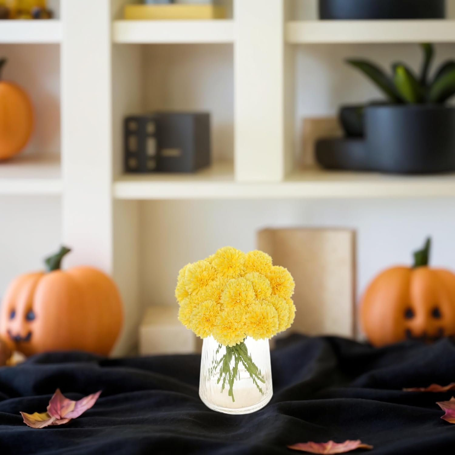 Kimura's Cabin 20Pcs Artificial Mums Flowers Fake Silk Chrysanthemum Balls Flower for Home Decor Easter Table Fall Bouquets Wedding Party DIY Decorations (Yellow)