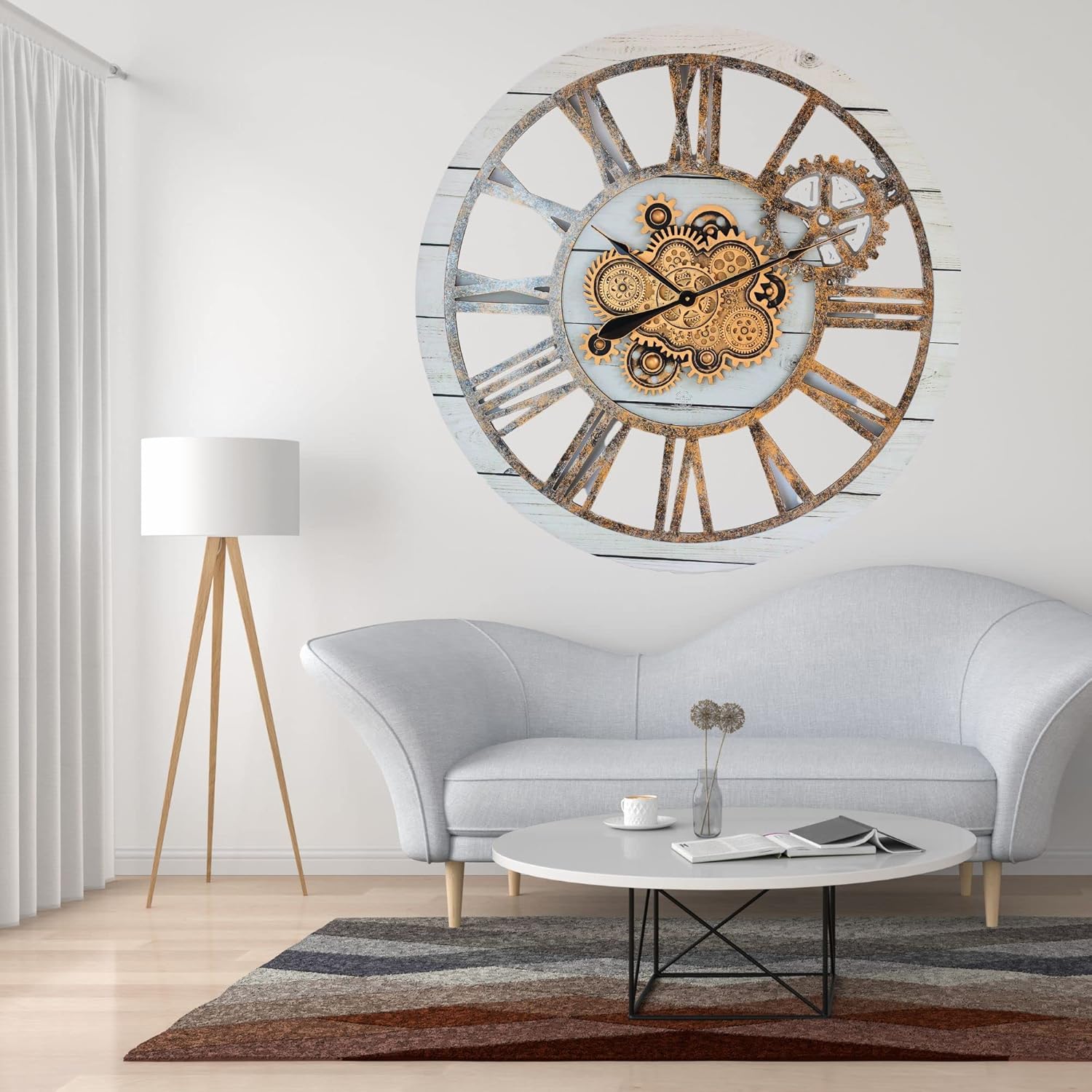 The Gears Clock 36'' Inch Real Moving Gear Wall Clock Vintage Industrial Oversized Rustic Farmhouse (White Farmhouse)