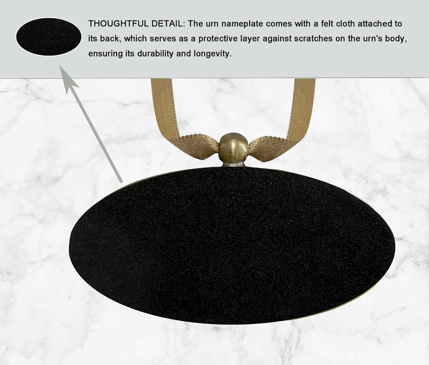 - The back of the nameplate features a soft velvet material that protects the urn from scratches. It comes with an elegant gift box that ensures the nameplate remains safe and secure during transport or storage.