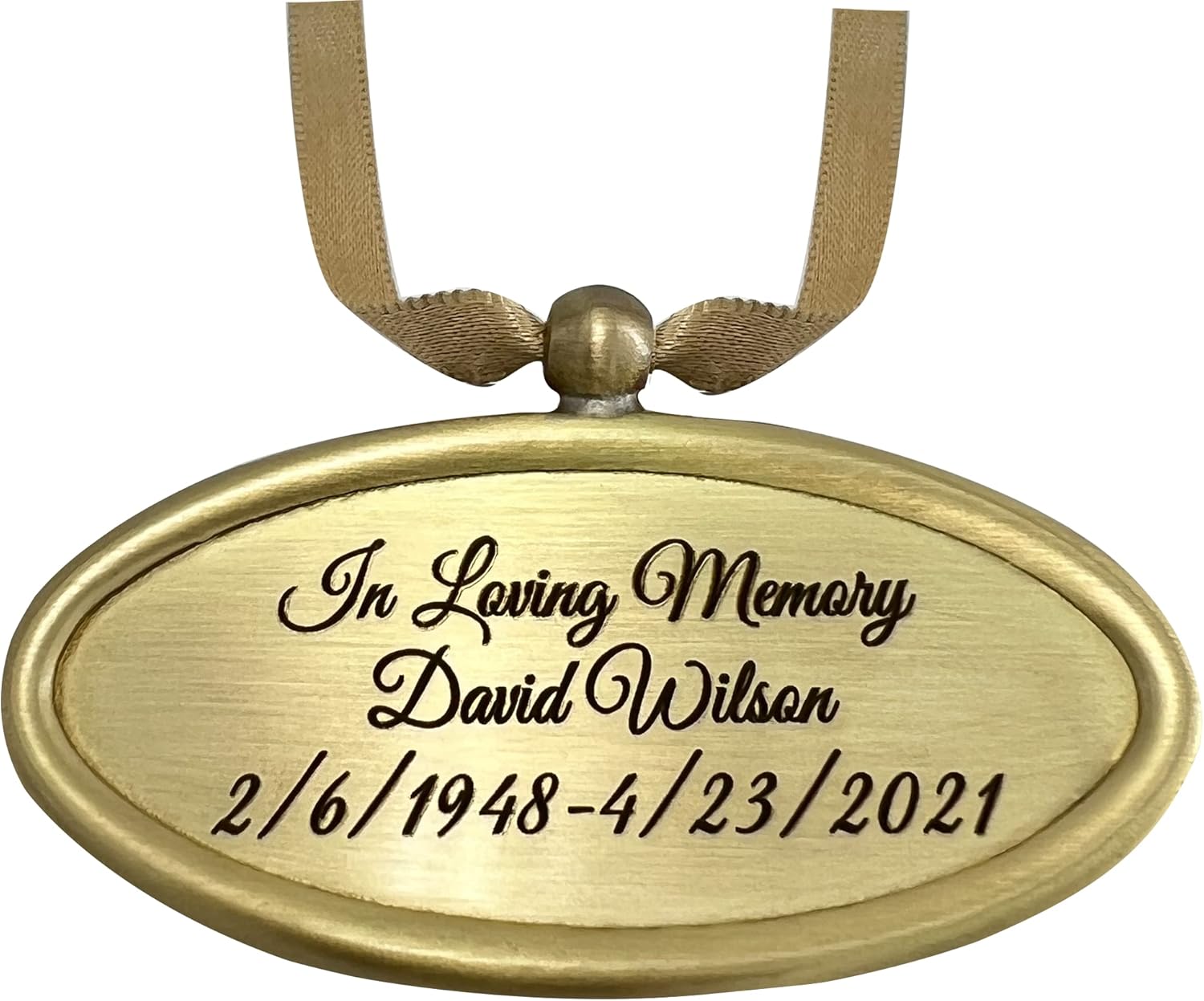 Personalized Engraved Name Tag for Urns - Customizable Plate for Cremation Urns - Engraved Hanging Plate in Golden or Silvery Tone with Satin Ribbon (Golden Pendant)