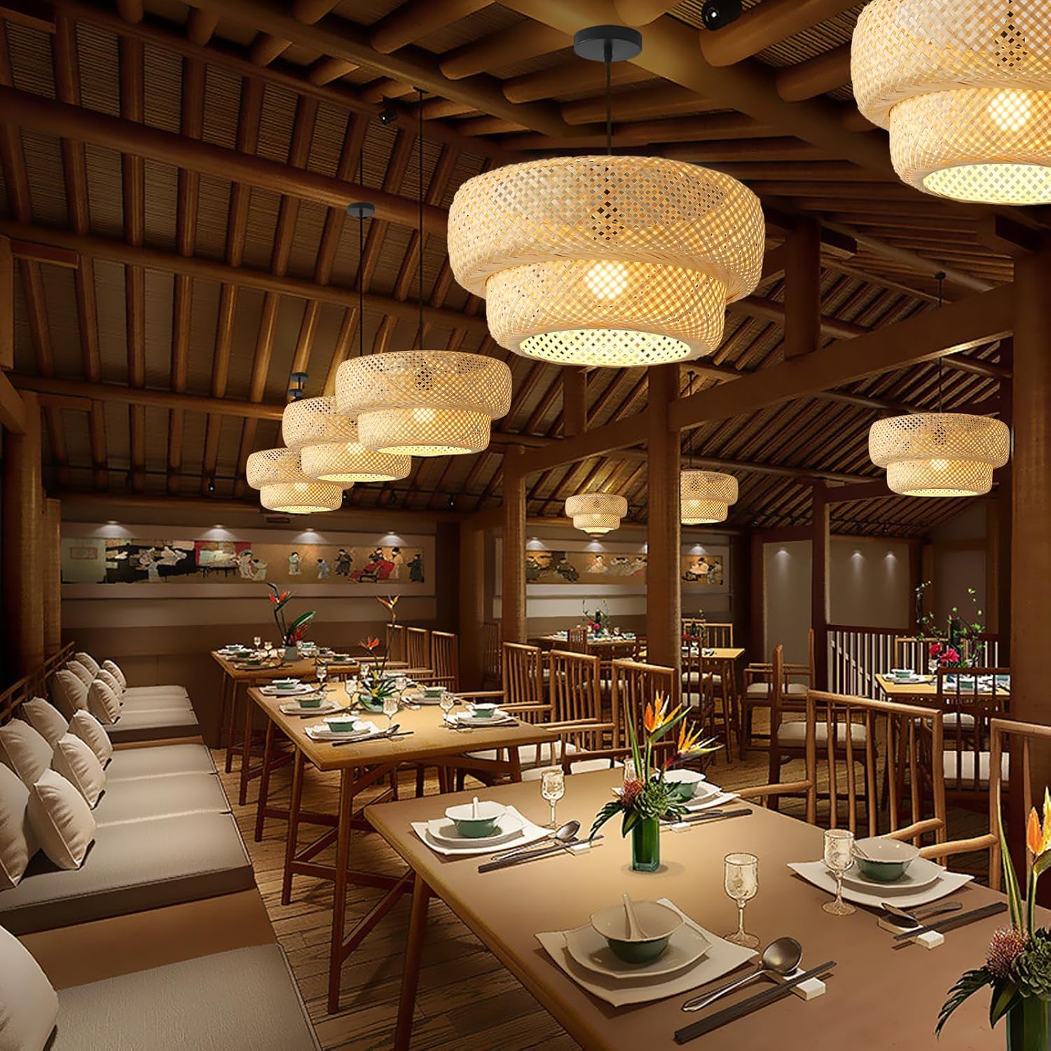 - 【Excellent Design】Bamboo rattan, the pendants are made of natural materials. The lights are hand woven with natural bamboo by superb skills bamboo artists. Decorated with classic tropical style elements, creates a wonderfully new look