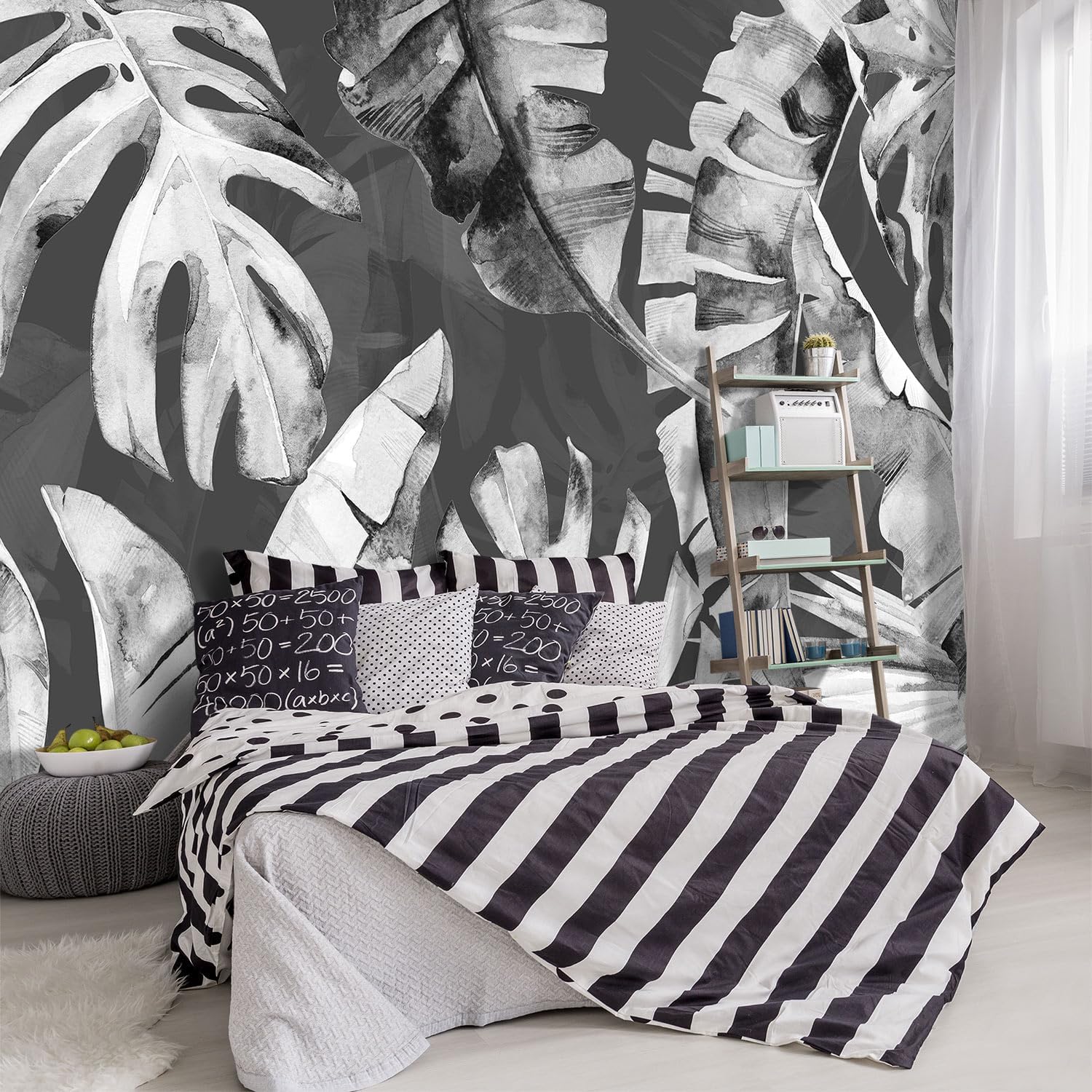 -Tropical Botanical Grey Banana Leaf Fabric Wallpaper Living Room Bedroom Bathroom Plant Wall Mural- 91"x65"( not Peel and Stick)