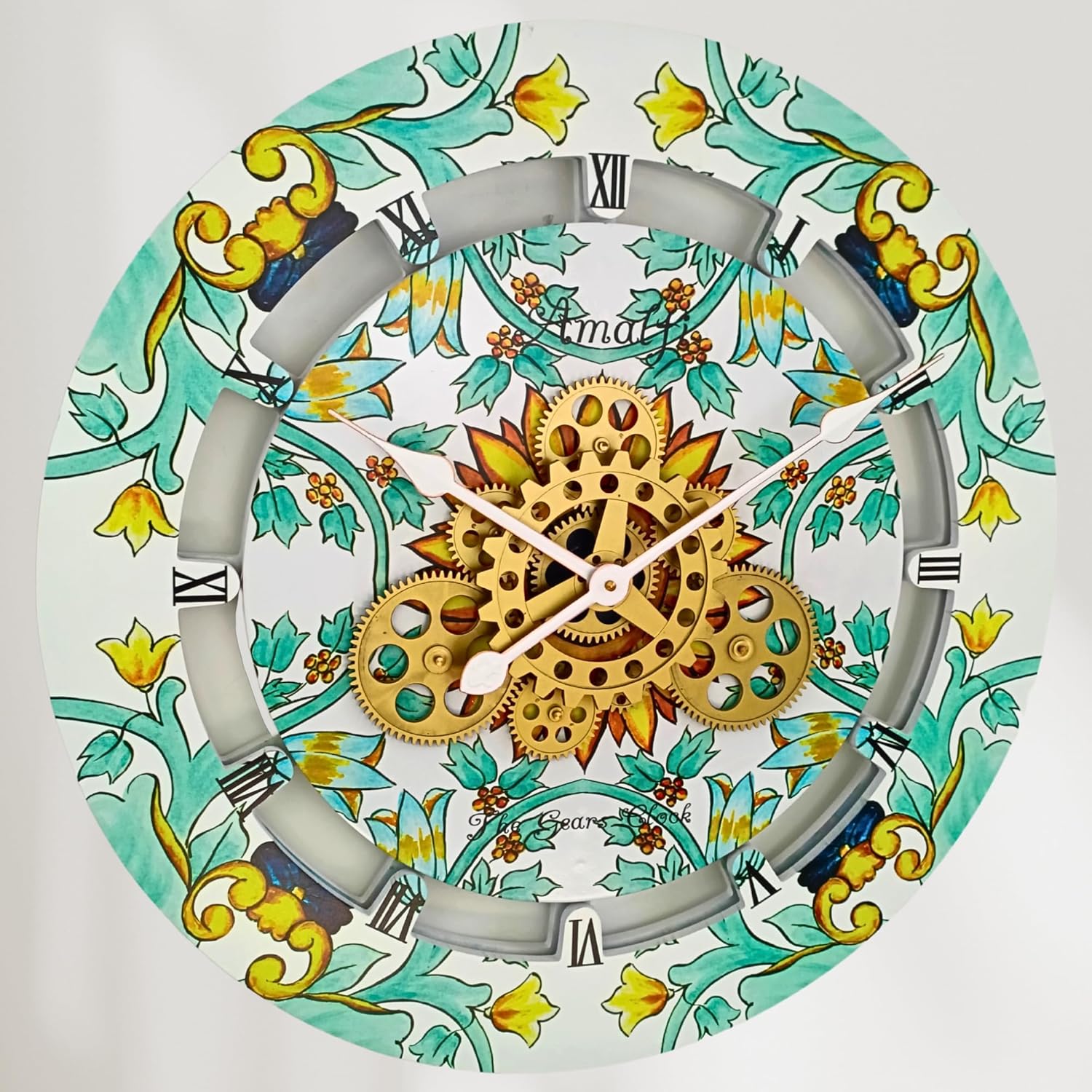 - Wall Clock Italy Collection with Real Moving Gears is an Art Timepiece inspired by the Famous Amalfi coast Tiles in Italy