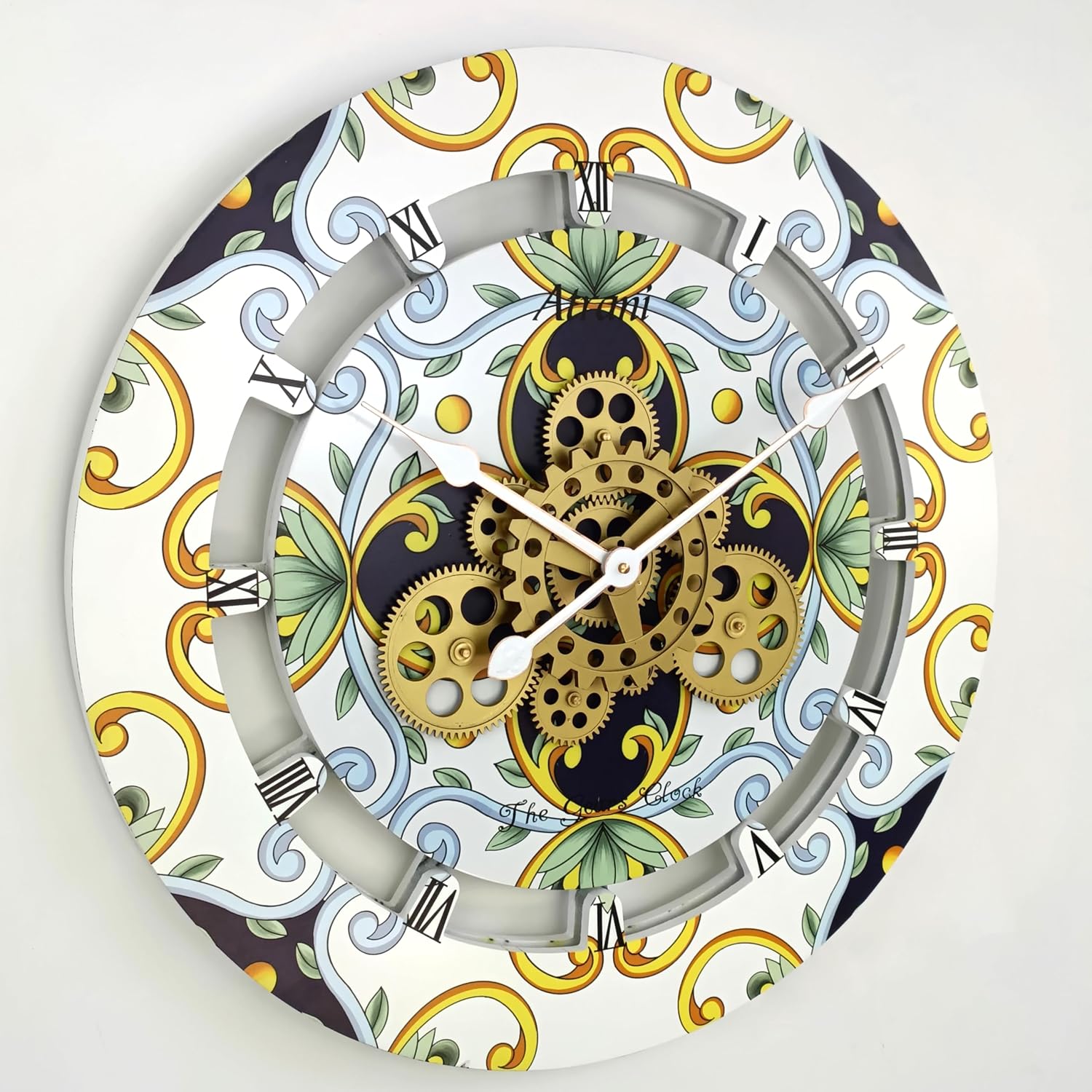 - Wall Clock Italy Collection with Real Moving Gears is an Art Timepiece inspired by the Famous Amalfi coast Tiles in Italy