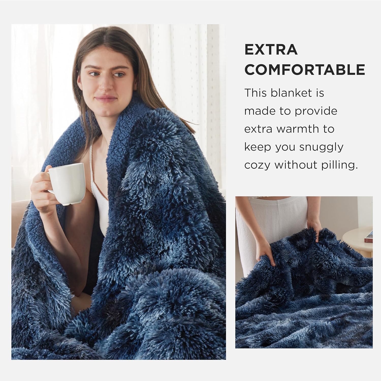 Bedsure GentleSoft Fluffy Tie Dye Navy Blue King Size Blanket for Bed, Thick Soft Sherpa Faux Fur Fleece Bedding Fuzzy Plush Winter Warm Large King Blanket, Cozy Blue Gifts for Men Women, 108x90
