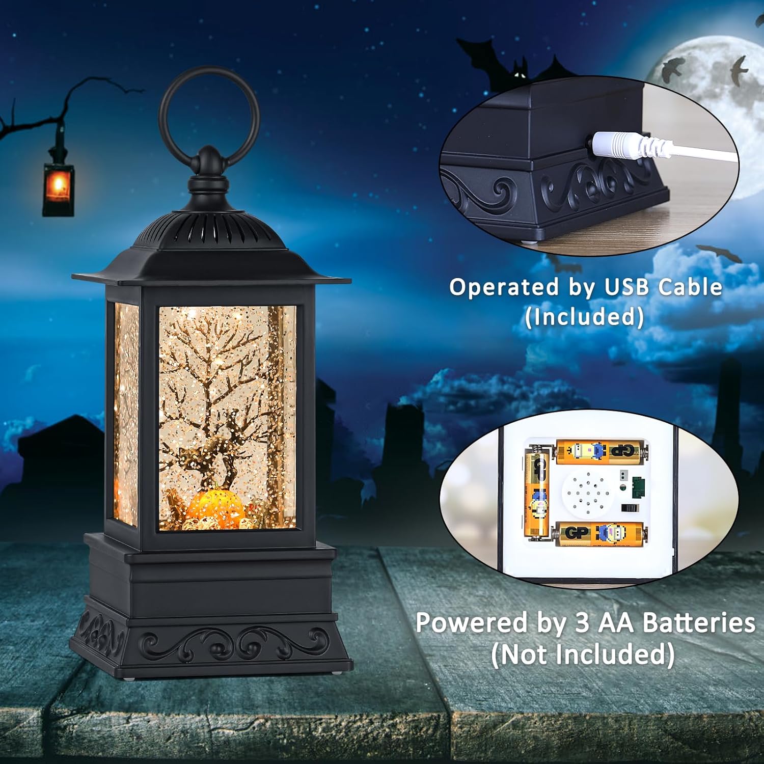 - 6H Timer Mode: Lighted black cat lantern has 6H Timer. It allows the snowglobe ON for 6 hours and OFF for 18 hours, cycle every 24 hours, and will light on automatically at the same time next day.It is the perfect choice for a night light, which gives off a soft glow, and do not worry about forgetting to turn it off