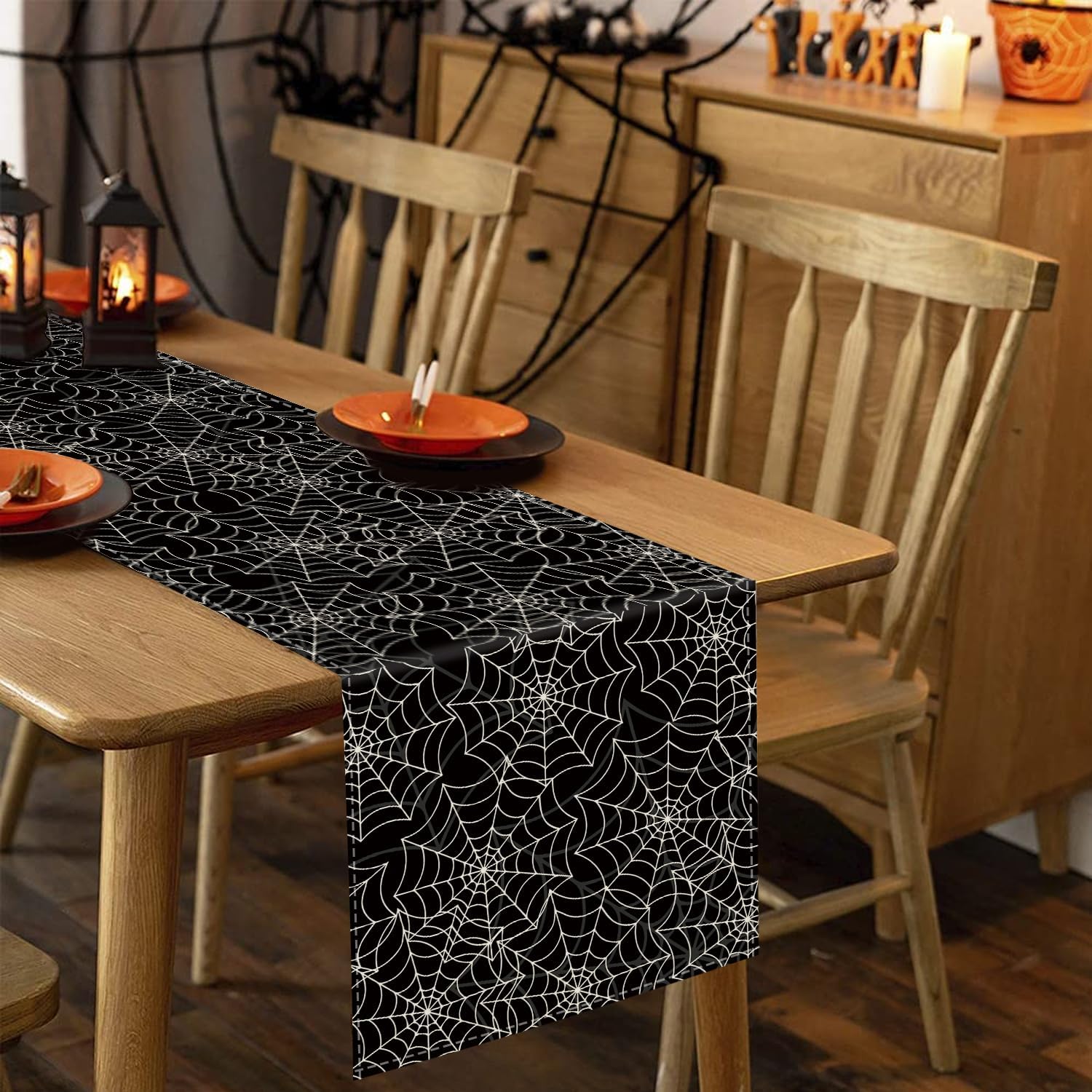 Halloween Table Runner Spider Web Black Linen Table Runners for Seasonal Holidays Indoor Outdoor Kitchen Dining Party Home Decor 13 x 72 Inch