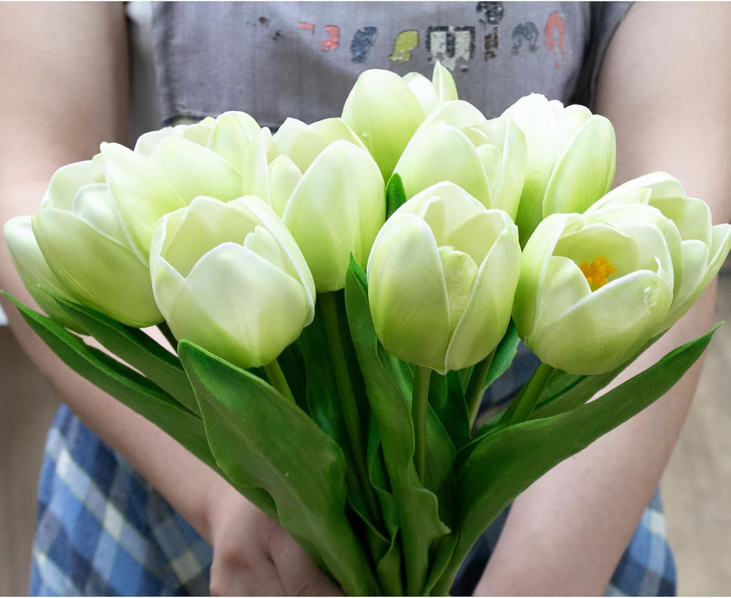 Buart Artificial Tulip in Bulk for Home Kitchen Wedding Bridal Bouquet,Fake Flowers for Valentine's Day Mother's Day Easter Table Centerpieces Decorations(Green,Real-Touch,12pcs)
