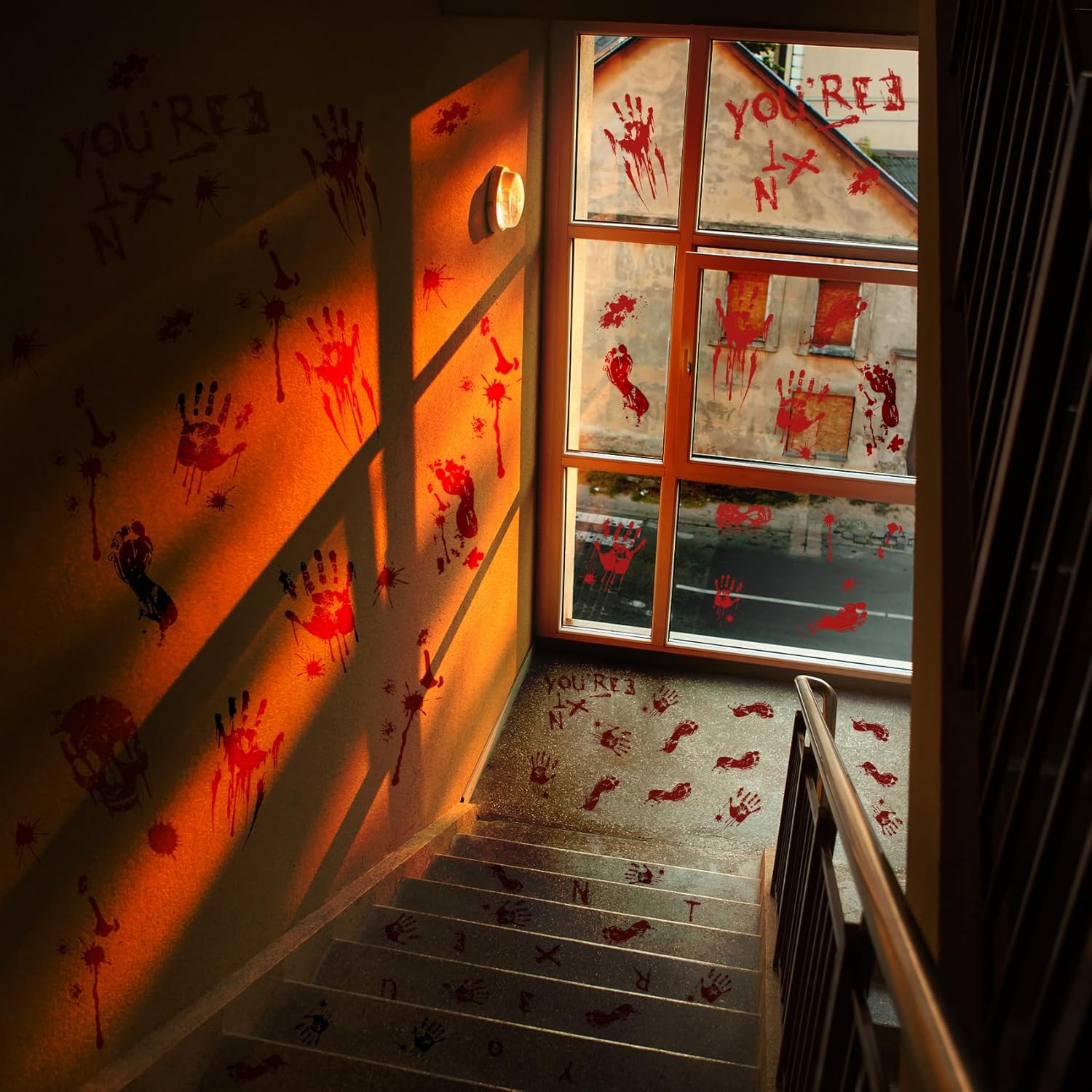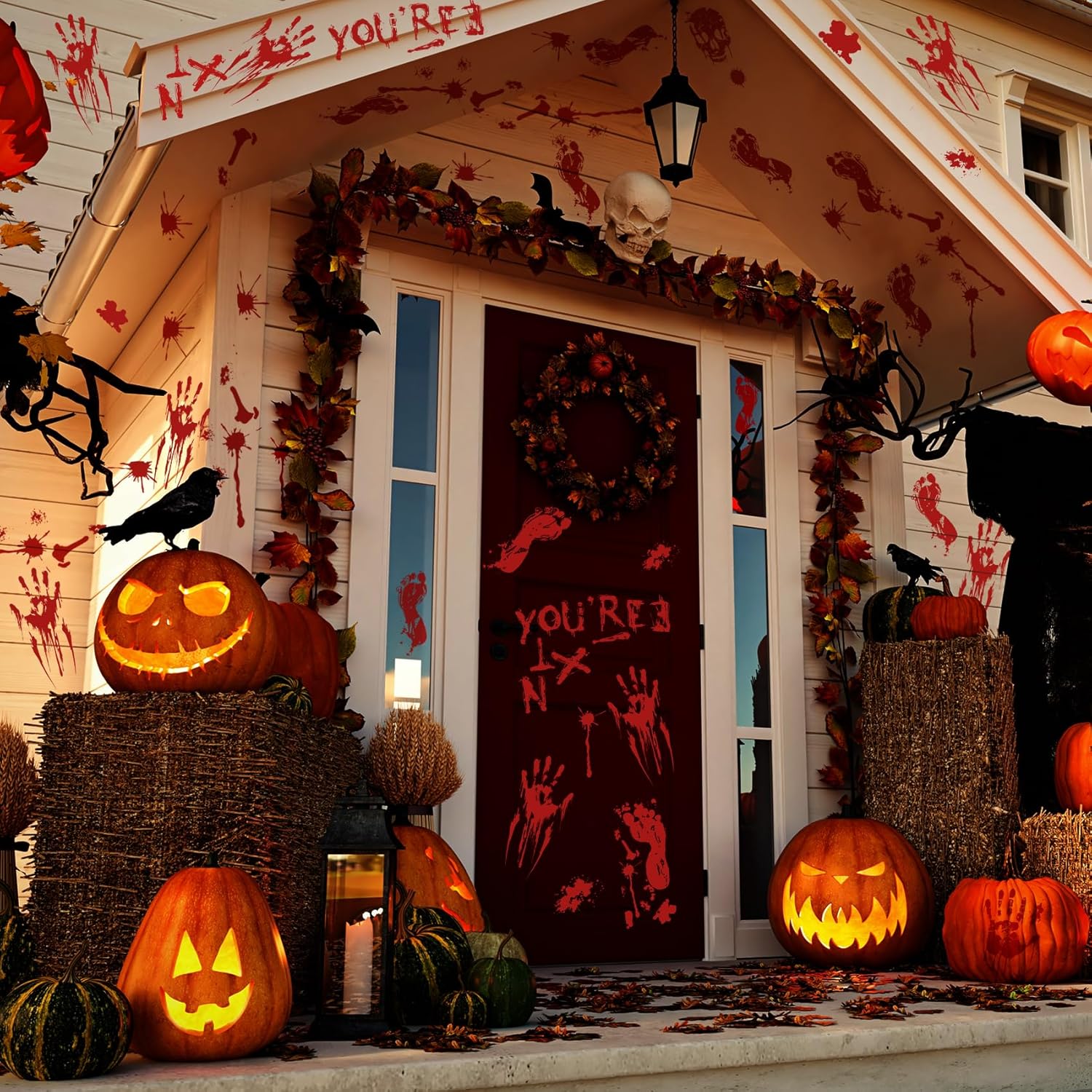 - Ultra Realistic Bloody Scene Prop : Updated 3D technology makes these bloody palms, footprints and skulls very clear and realistic, with bright colors and full of haunted house atmosphere. Easily create a spooky porch, bathroom entry, great for Halloween and zombie parties.