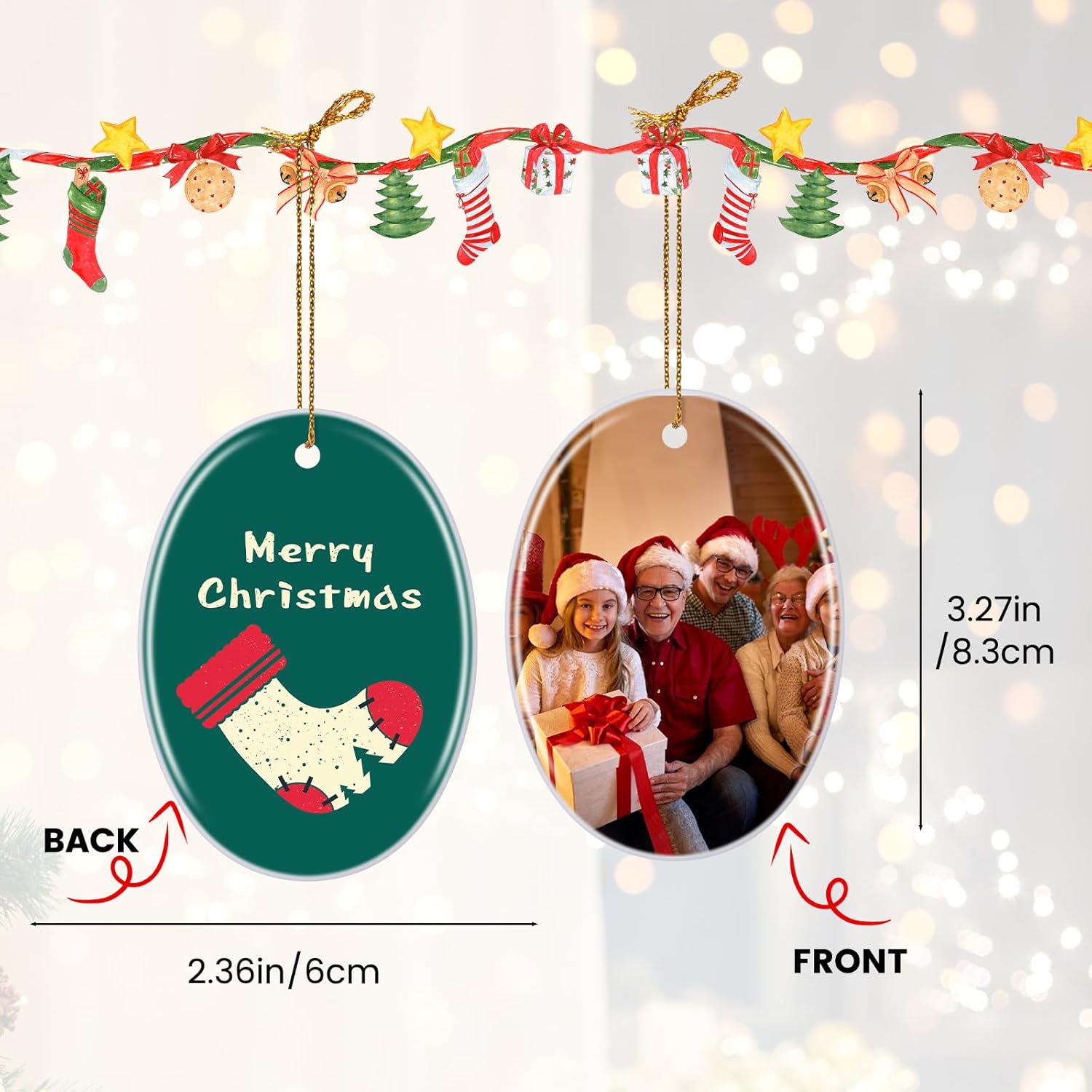 Personalized Christmas Ornaments 2025, Double-Side Custom Christmas Ornament, Oval Ceramic Photo Ornament Christmas Tree Decorations for Kids, Mom, Dad, Family, Loved One