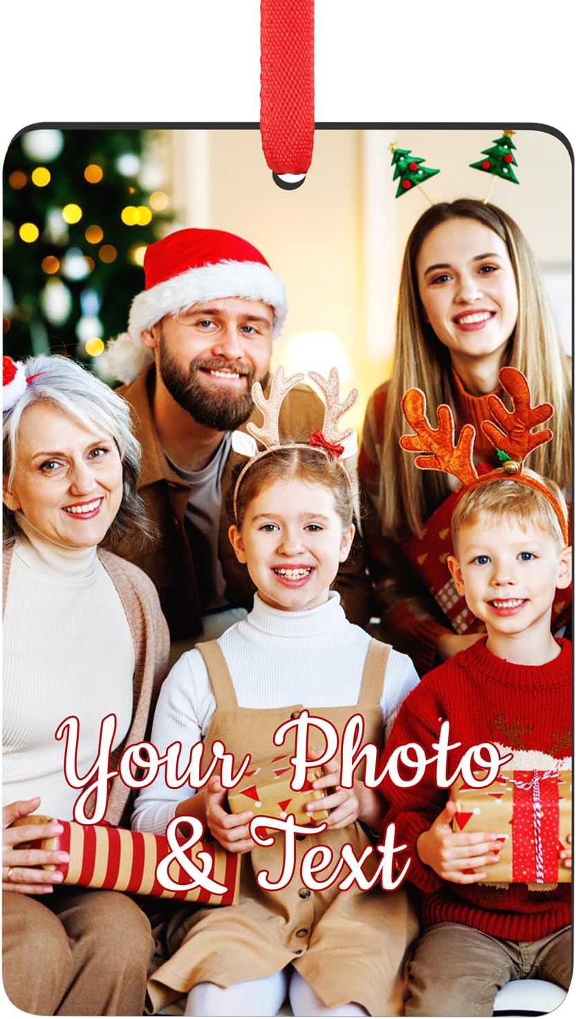 - 【Custom Photo Text Christmas Ornaments】Click on the " Customize Now " button to design your own Christmas ornament special with desired Photo, Picture, Logo, Text. Simply upload any photo, fit by the corners. Choose your font color, fill in the optional blank with your text. Our designers will do the rest.
