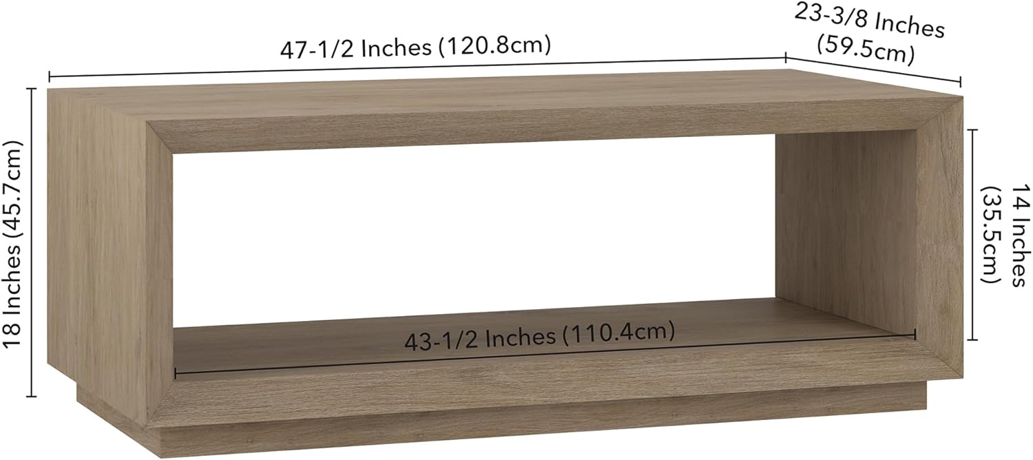 Henn&Hart 48" Rectangular Coffee Table with Open Storage Shelf for Living Room, Family Room, or Office, Antiqued Gray Oak