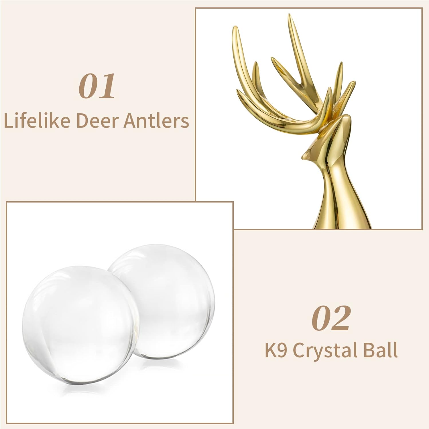 - LIVELIKE CHRISTMAS REINDEER STATUE - With charming color and lifelike posture, each reindeer sculpture has a crystal ball on their heads, bringing a sense of luxury and beauty to any scene. The crystal ball can be removed without affecting its aesthetics.