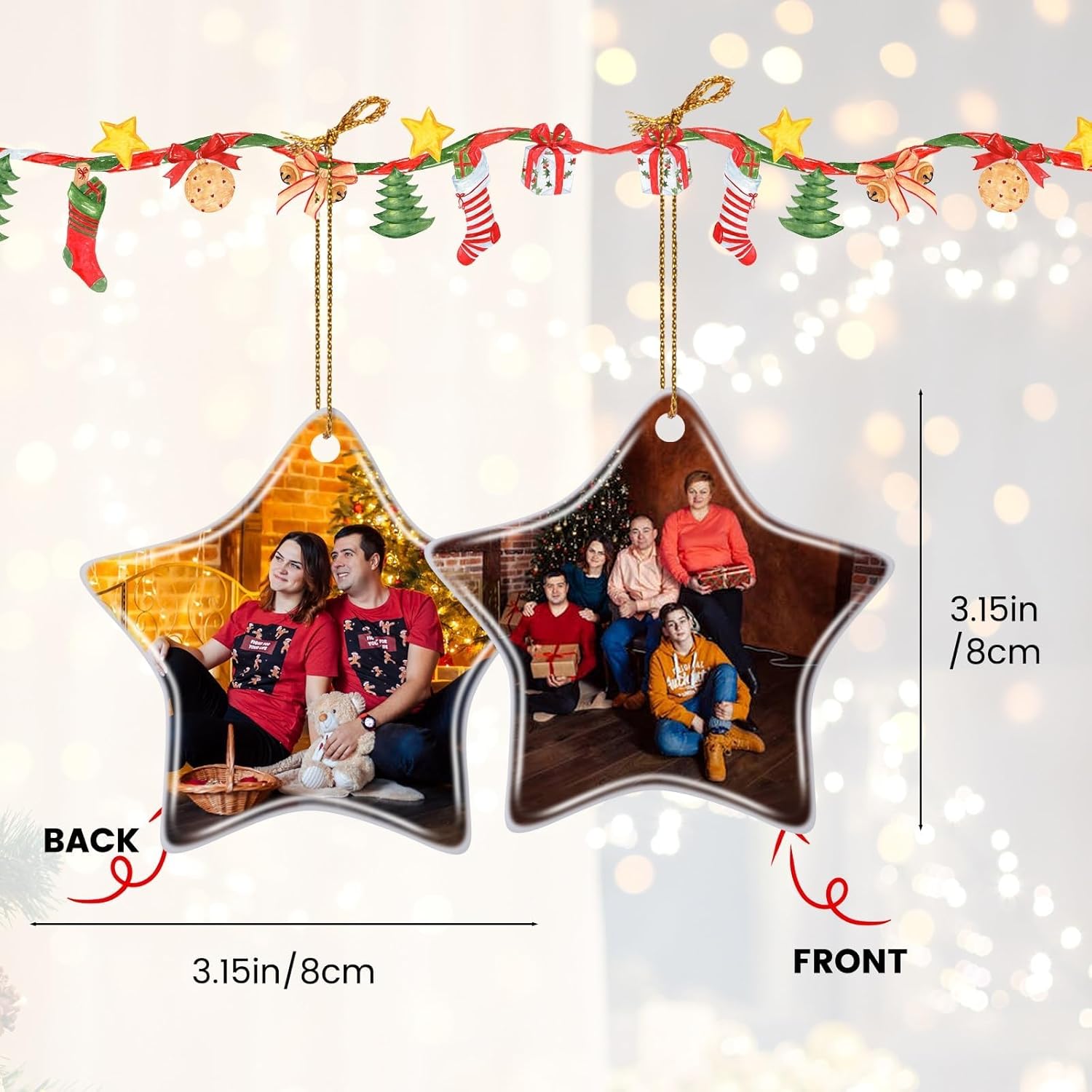 Personalized Christmas Ornaments 2024 Customized with Photo Text Ornament Keepsake Pet First Christmas Ornament Bulk Custom Ceramic Xmas Tree Decorations, Star