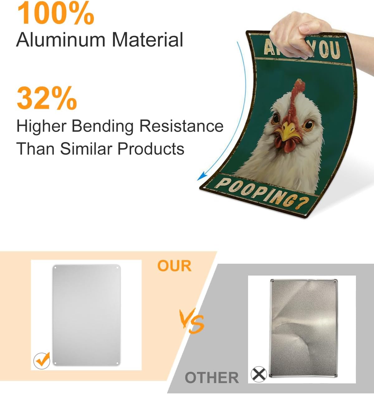 - 【Constructed from 100% rust-free aluminum】With four pre-drilled holes in the rounded corners, it's easy to hang on walls or other surfaces, allowing for versatile indoor and outdoor display.