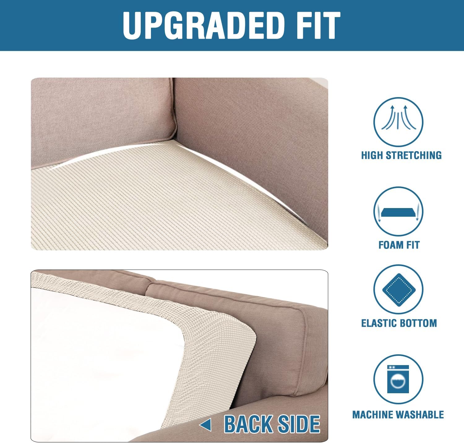 H.VERSAILTEX Super Stretch Individual Seat Cushion Covers Sofa Covers Couch Cushion Covers Slipcover Sets Thick Jacquard Textured Twill Fabric (1 Piece Chair Cushion Cover, Natural)