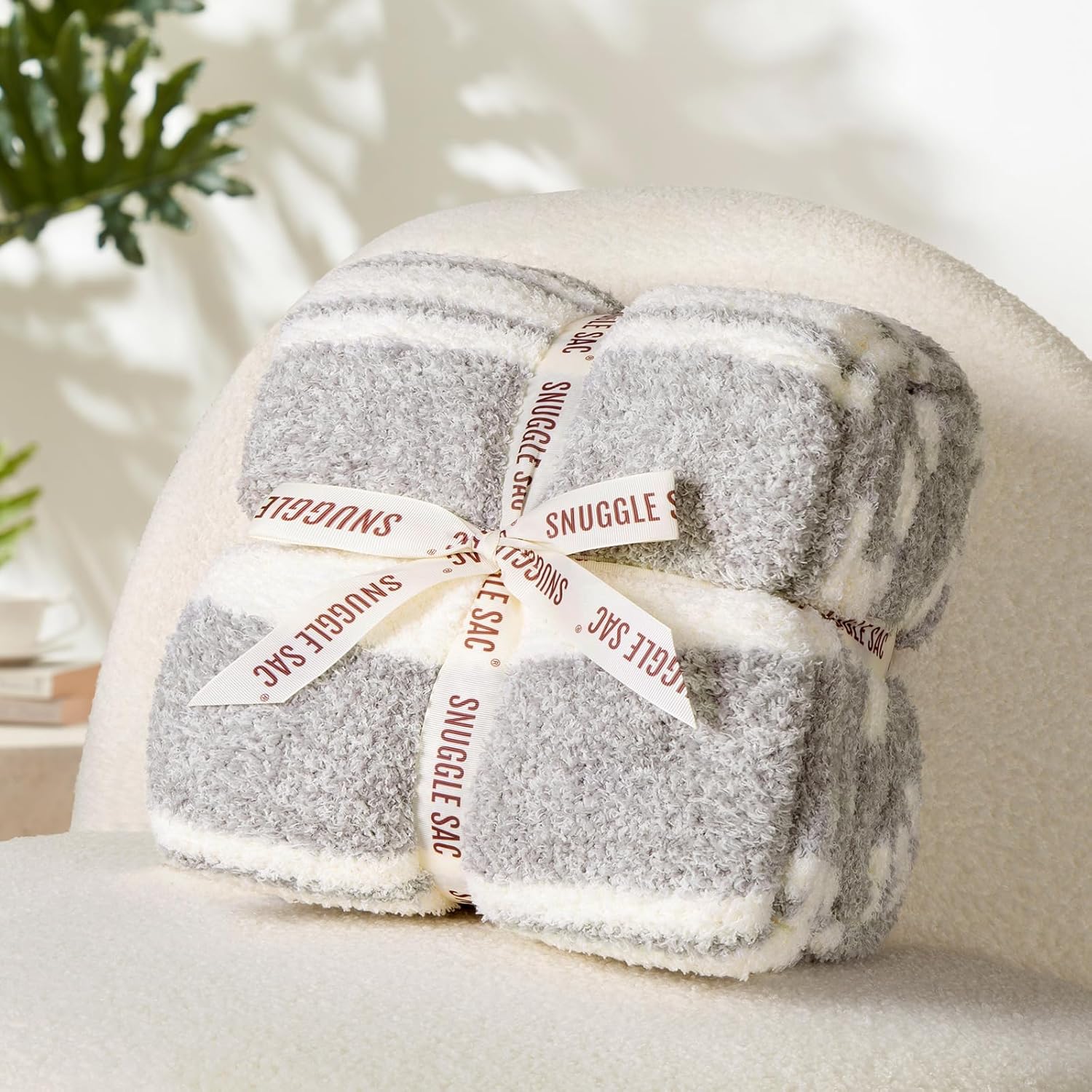 Snuggle Sac Twin Size Bedding Blankets Luxurious Microfiber, Reversible Super Soft Warm Cozy Blankets Fuzzy Plush Blanket for Bed,Couch,Sofa,Living Room, Grey Stripe,60x80 inches