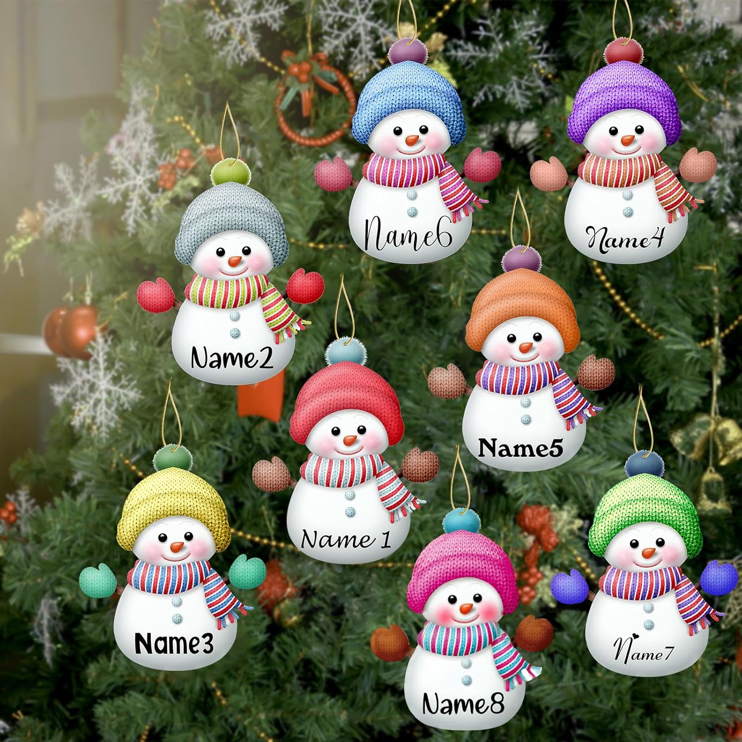 Personalized Christmas Ornaments with Names Snowman 8 Pcs Custom Family Ornament Customized Xmas Tree Hanging Wood Decoration Gift 3.15"(8cm)