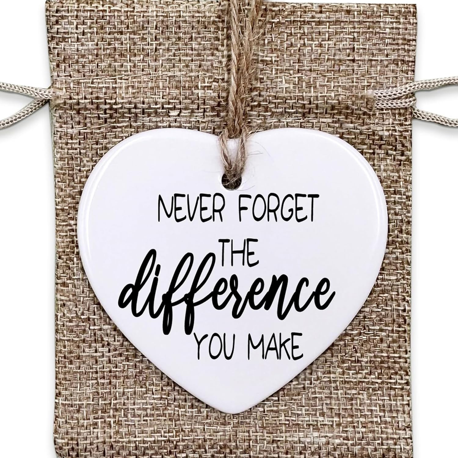 • 【Appreciation gifts for coworkers】This special ceramic ornament is a great keepsake gift with the words “Never forget the difference you make” to show your love and appreciation for any occasion.