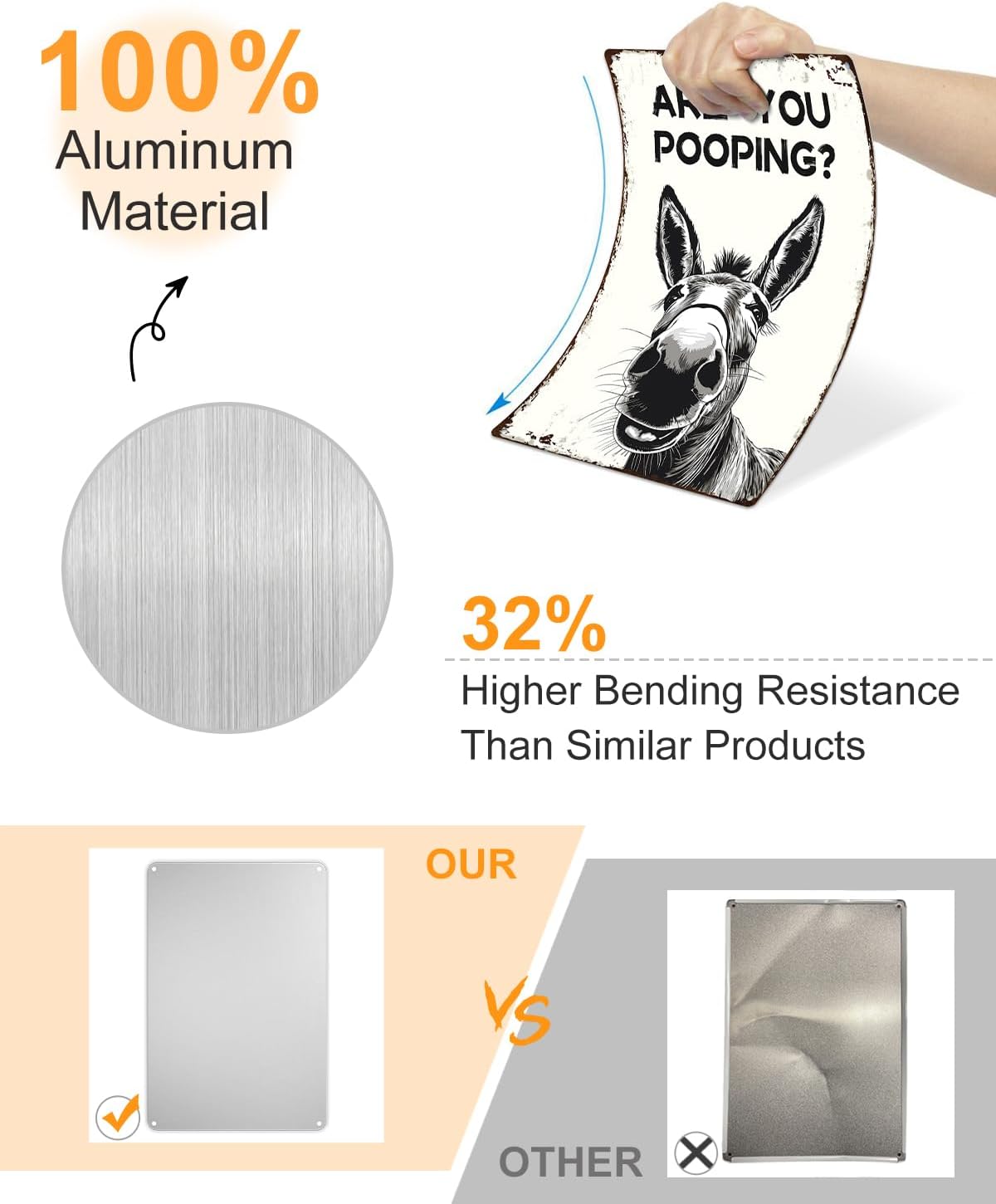 - 【Constructed from 100% rust-free aluminum】With four pre-drilled holes in the rounded corners, it's easy to hang on walls or other surfaces, allowing for versatile indoor and outdoor display.