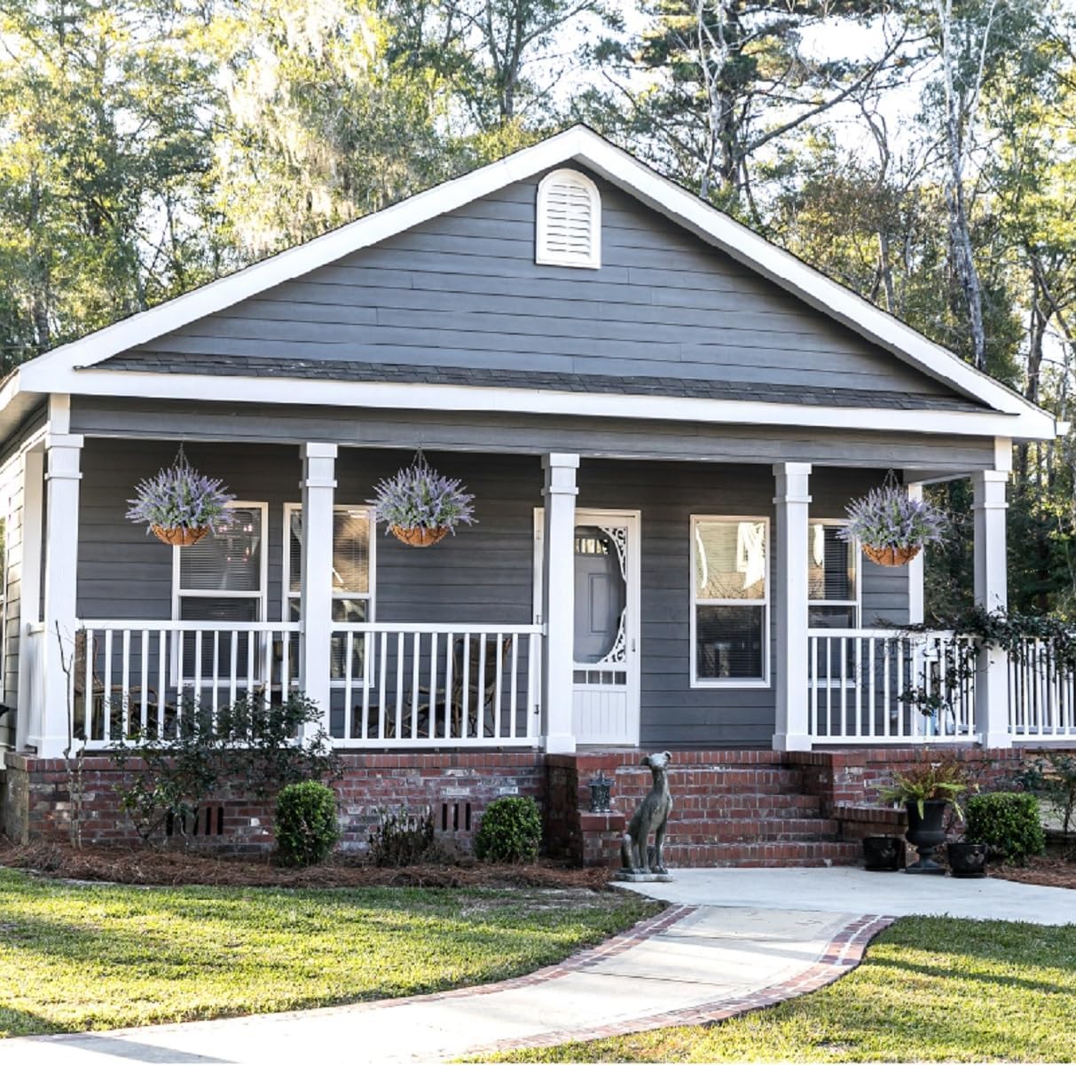 - GOOD QUALITY: The hanging flower pots and artificial lavender flowers were made of good quality material that don’t require maintenance after assembly. It’s UV resistance and won’t fade, sturdy enough for any weather. No watering needs. It looks full and beautiful all season.