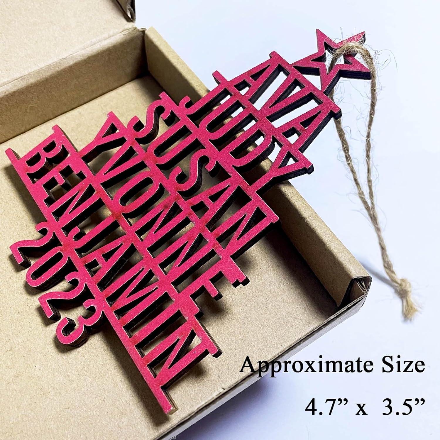 - Perfect Size And Easy To Hang-Measuring at 5.9" x 3.9",this ornament is the ideal size to adorn your Christmas tree. PS:The name will be rearranged from longest to shortest to make the Christmas tree shap.