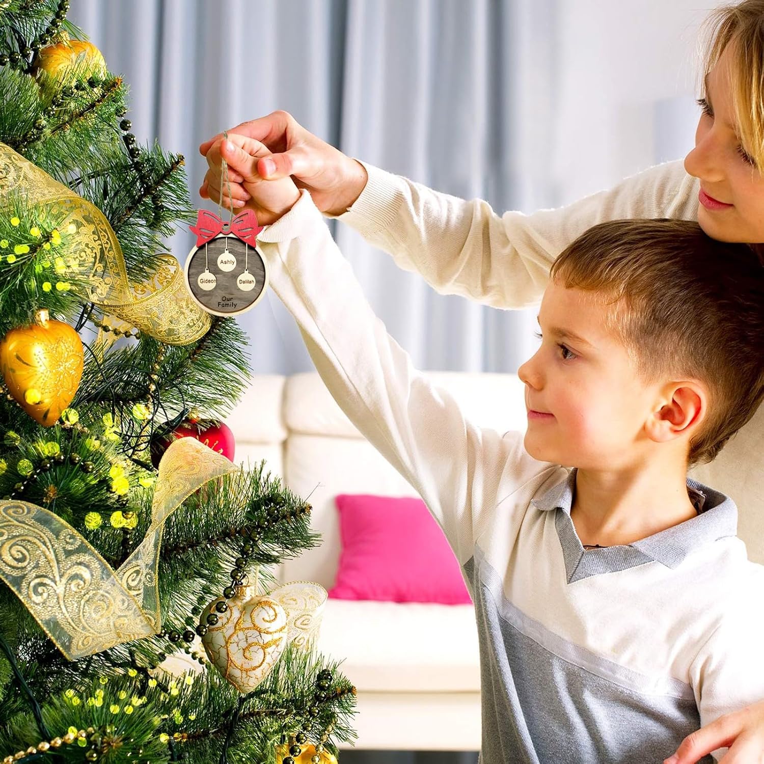 - Personalized Christmas Tree Ornaments-Add your Christmas blessings and familys'names, get one cute Christmas gift for them. Also great personalized Christmas warm gifts for your friends, neighbors, colleagues, etc.