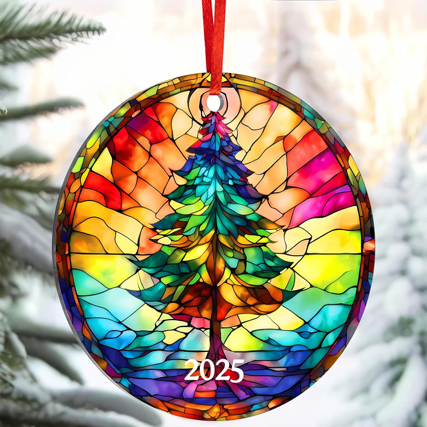 Jabihome Christmas Ornaments 2025, Exchange for Women, Men, Collectible Dated Year Ornaments for Tree, Unique Acrylic Suncatcher, Printed Stained Glass Effect Decor (Christmas Tree)