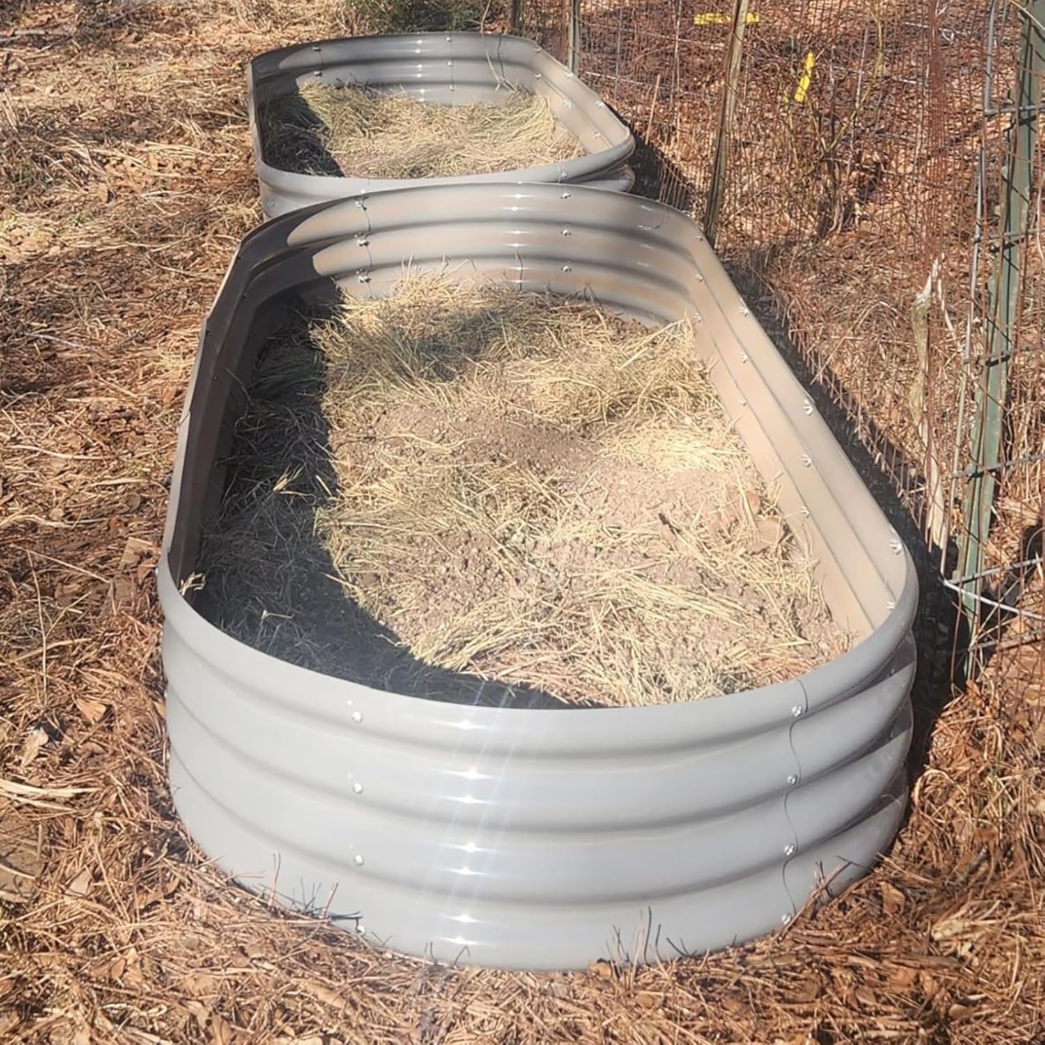 - 【Safety Features】①Anti-rust Coating, do not contaminate soil, safe for plants and humans; ②Oval shape, the raised planter box has rounded corner; ③Thickened crimped edge design, no sharp edges, smooth to the touch; ④ Gloves included; will not hurt your hand when installing or planting