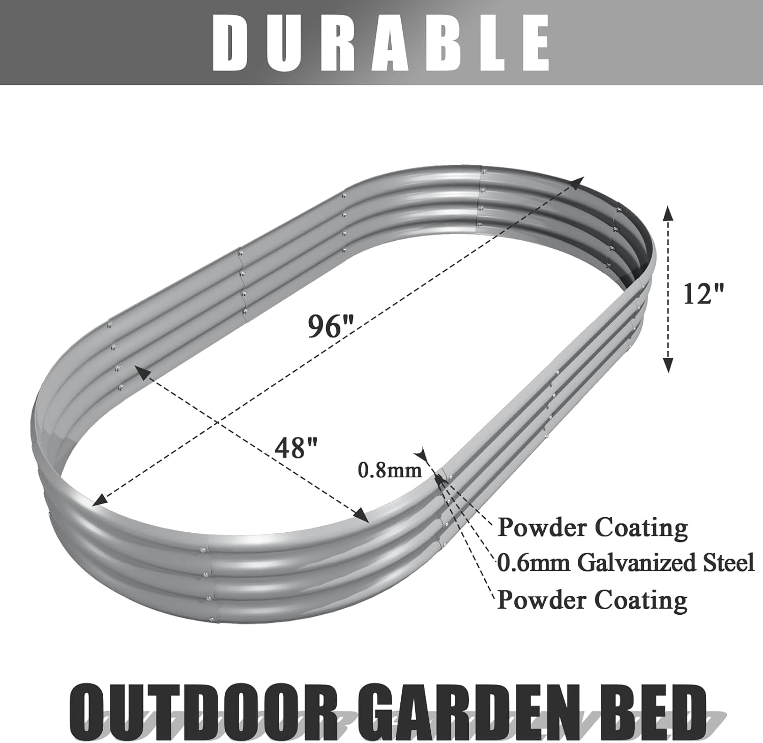 - 【Outdoor Garden Bed Size】96''(L) x 48''(W) x 12''(H), provide extra large growing space to meets your planting needs and the oval shape makes the garden more tidy