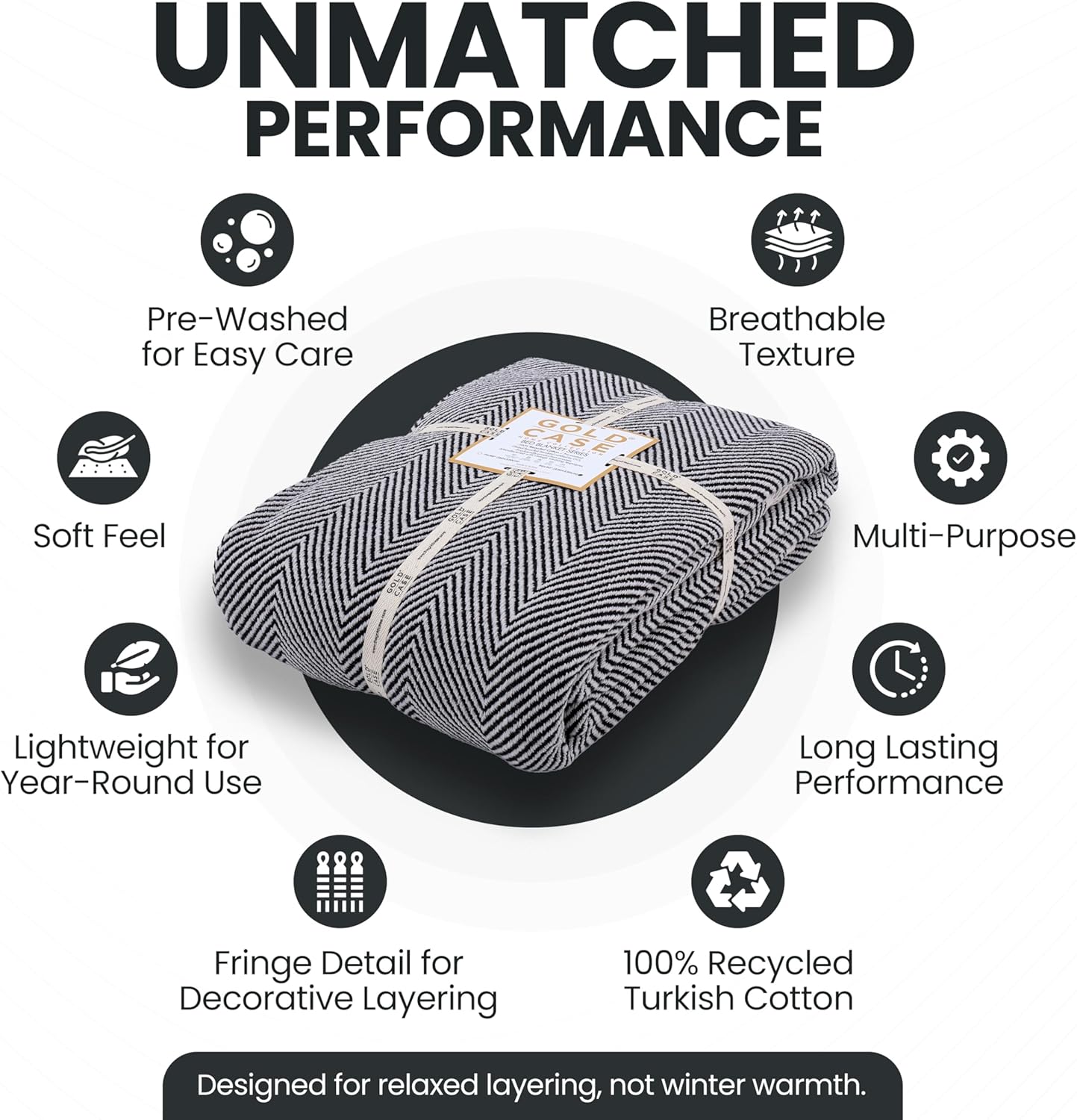 Gold Case Throw Blanket for Bed – 100% Recycled Turkish Cotton Bed Blanket – Decorative Throw Cotton Blankets for Living Room & Bedroom – Woven Twin Blankets - 71x90 - Black