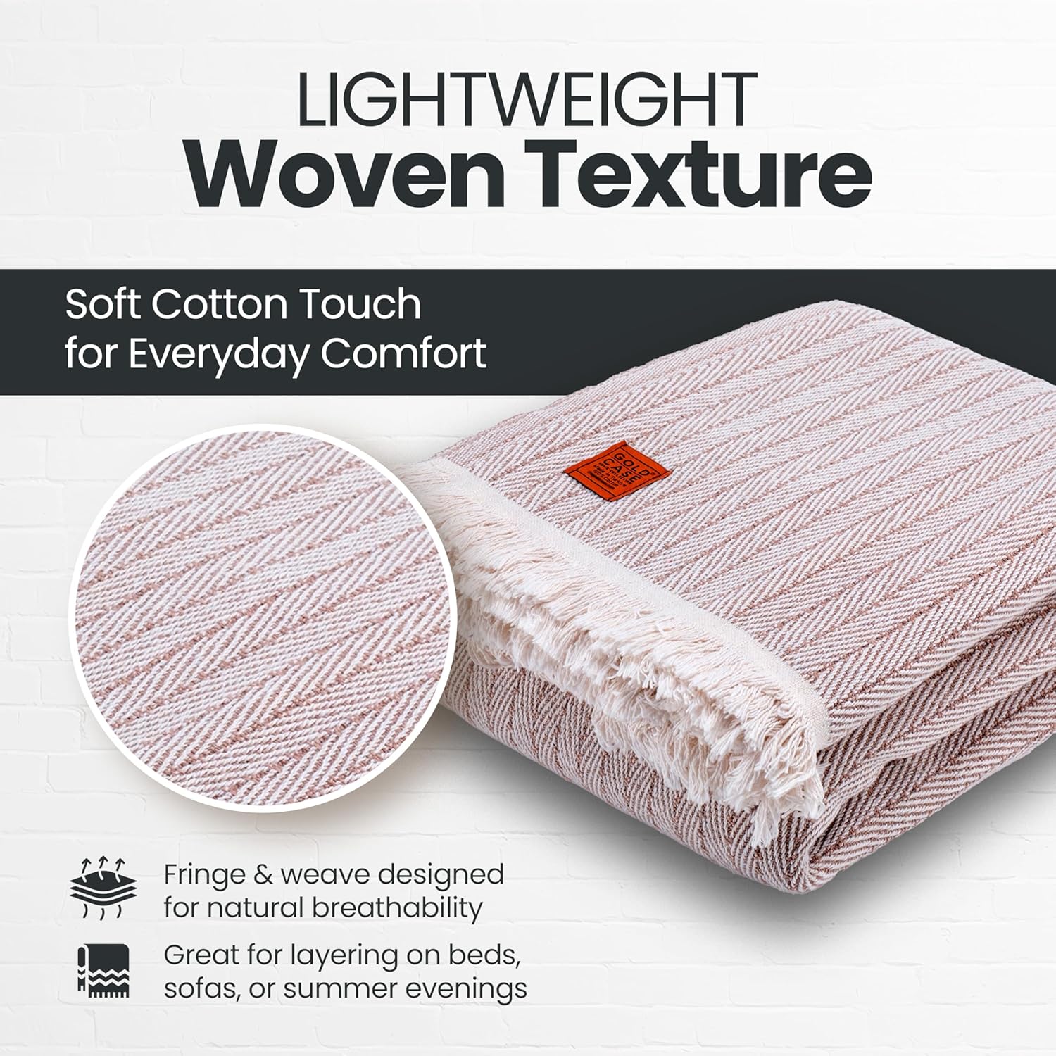 - LIGHTWEIGHT LAYERS FOR RELAXED MOMENTS: Woven from 100% recycled Turkish cotton, this breathable cotton blanket throw adds a soft, textured touch to your space; this bed throw blanket made for layering on your bed, or adding a laid-back look to your decor