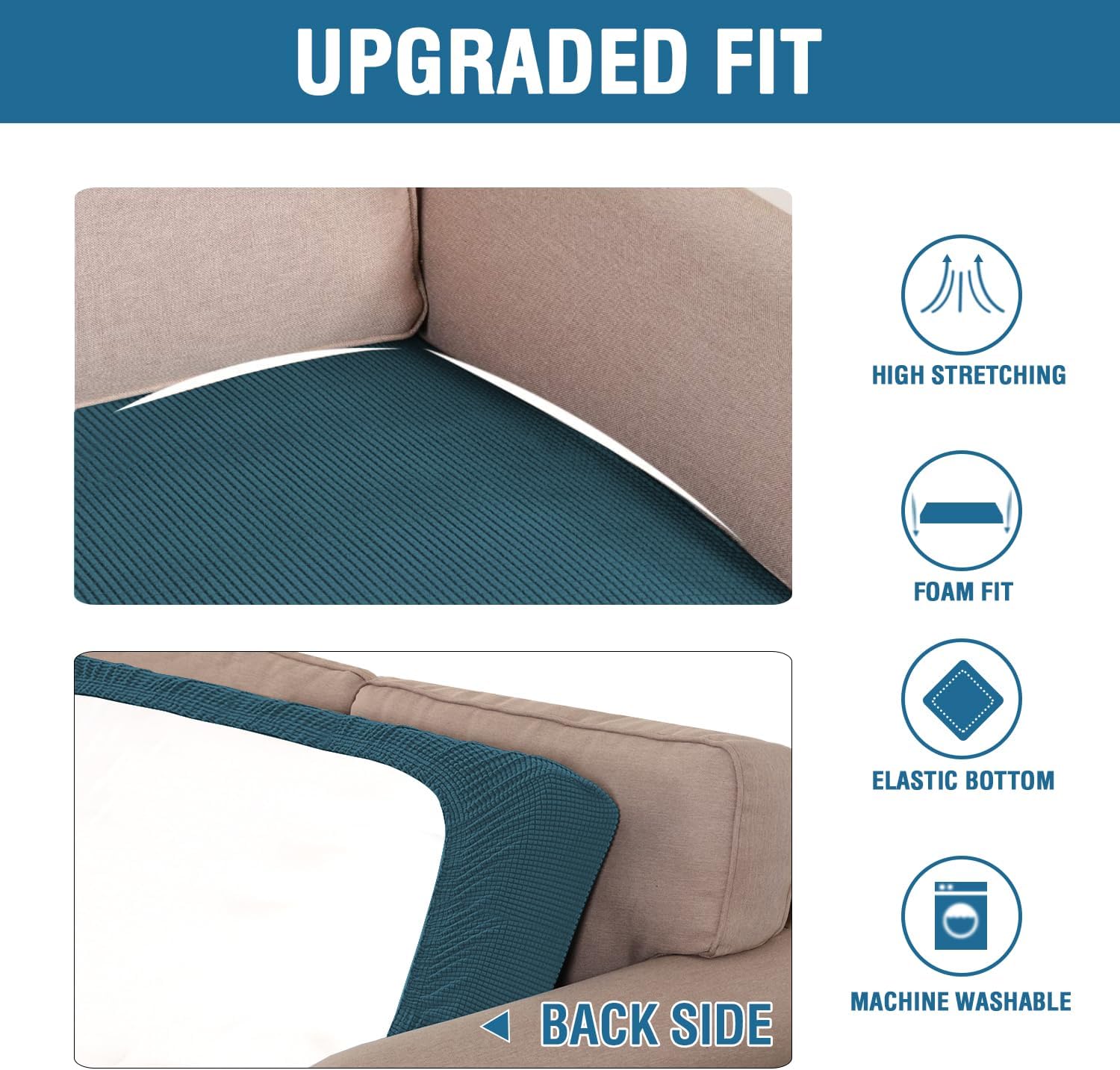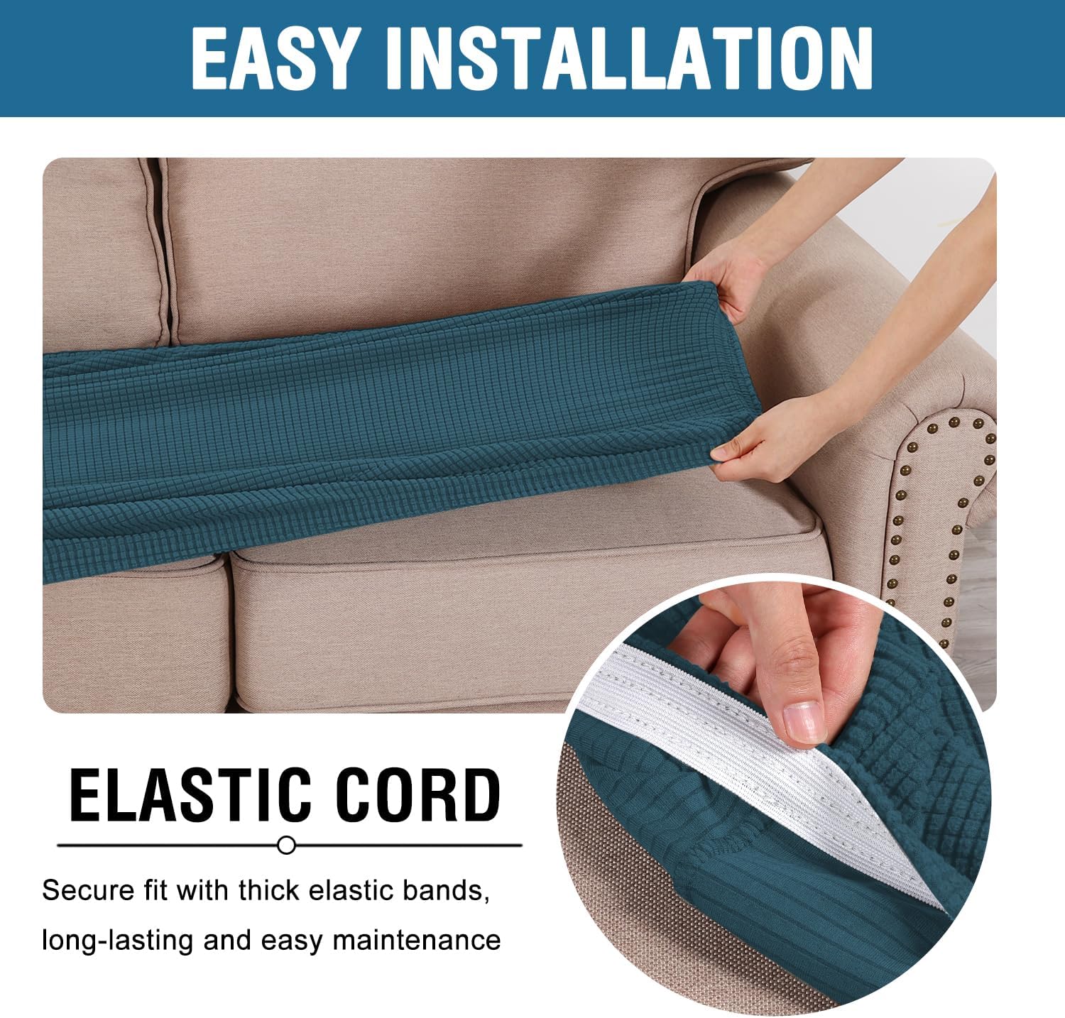 H.VERSAILTEX Super Stretch Individual Seat Cushion Covers Sofa Covers Couch Cushion Covers Slipcover Sets Thick Jacquard Textured Twill Fabric (1 Piece Loveseat Cushion Cover, Deep Teal)