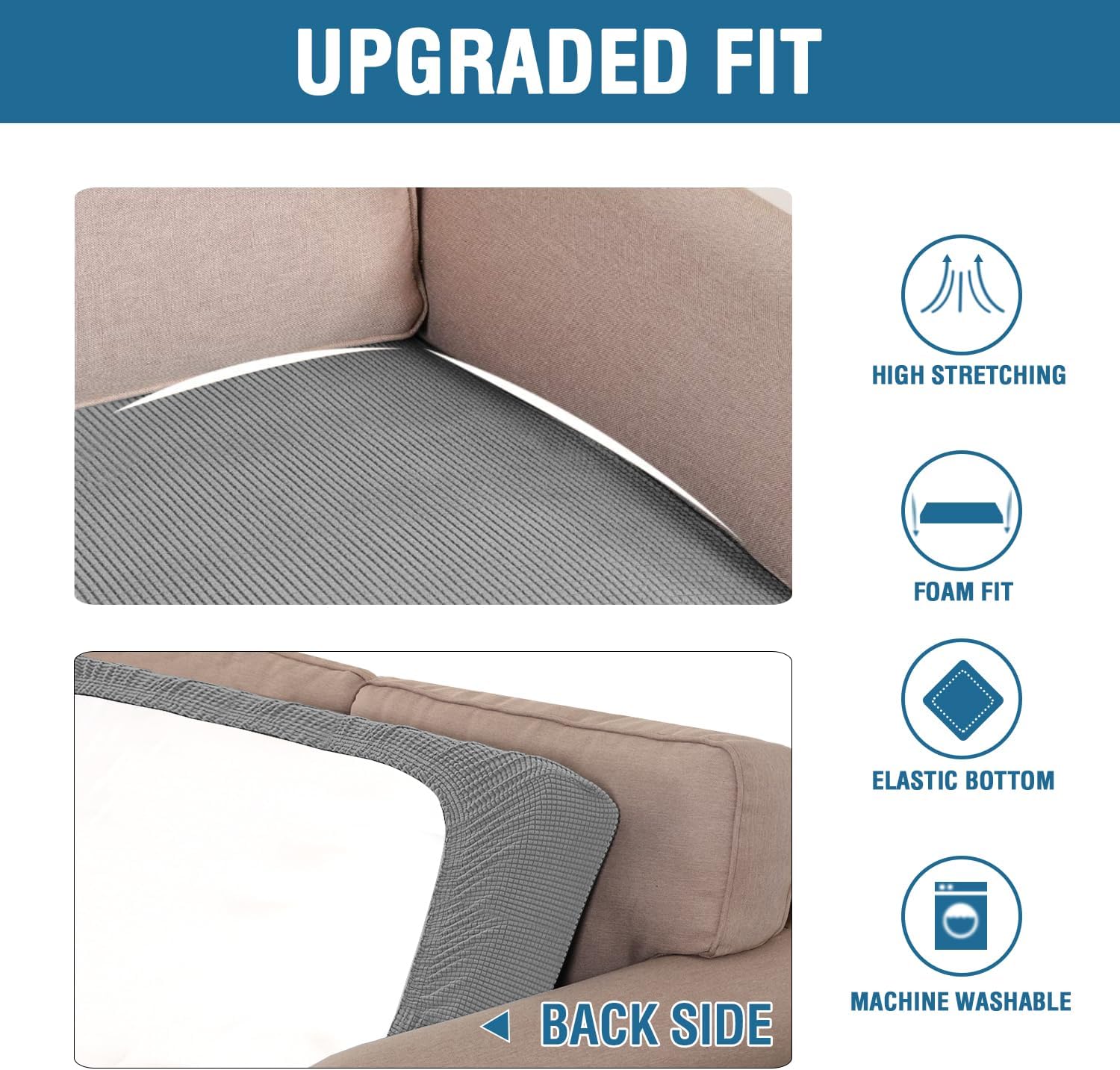 H.VERSAILTEX Super Stretch Individual Seat Cushion Covers Sofa Covers Couch Cushion Covers Slipcover Sets Thick Jacquard Textured Twill Fabric (1 Piece Sofa Cushion Cover, Dove)