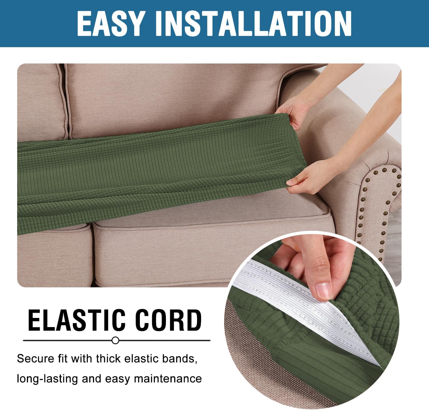 H.VERSAILTEX Super Stretch Individual Seat Cushion Covers Sofa Covers Couch Cushion Covers Slipcover Sets Thick Jacquard Textured Twill Fabric (1 Piece Chair Cushion Cover, Bronze Green)