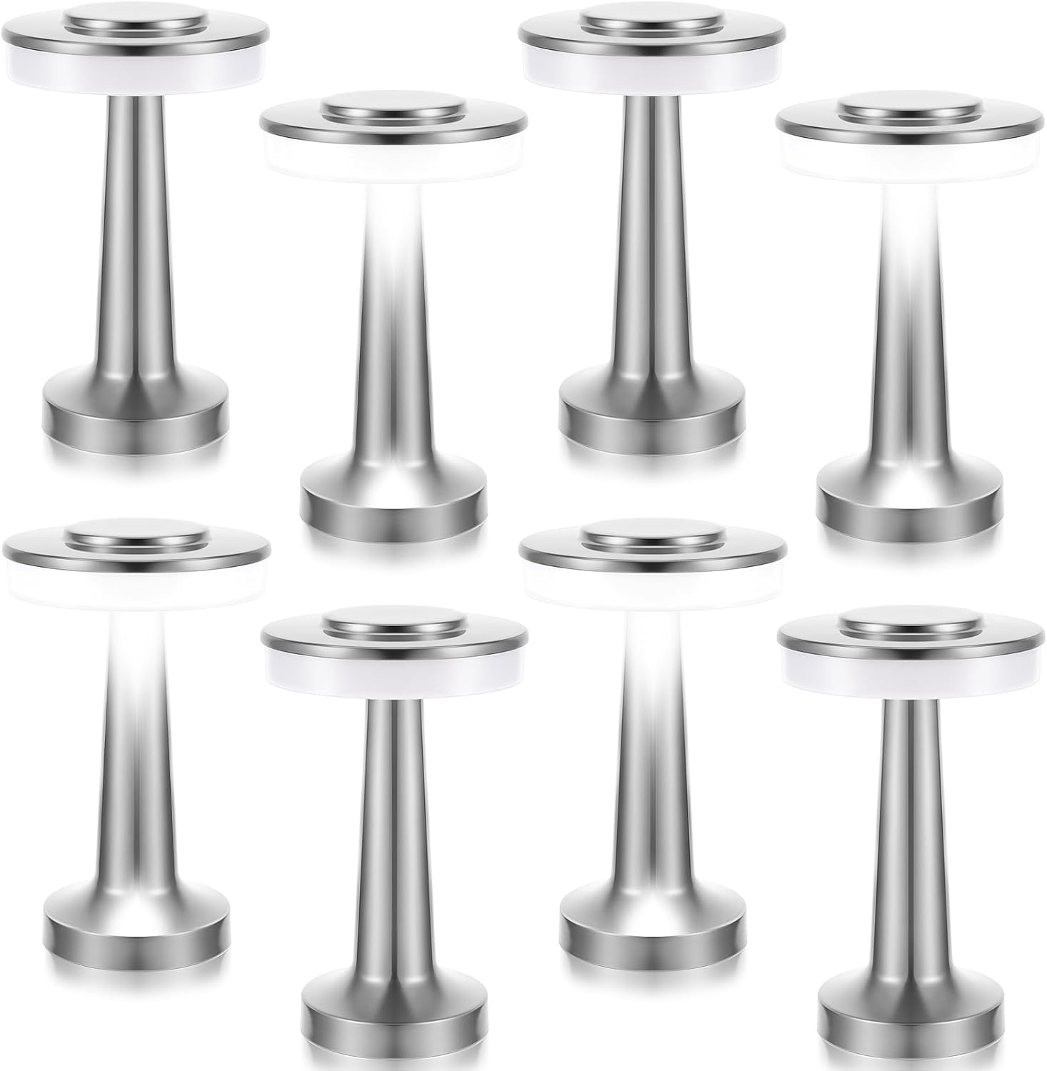 VIHOSE Set of 8 LED Portable Cordless Table Lamp with Touch Sensor 3 Color Stepless Dimming Rechargeable Battery up to 15 Hours Cordless Table Light Wireless Lamp for Nursery(Silver)