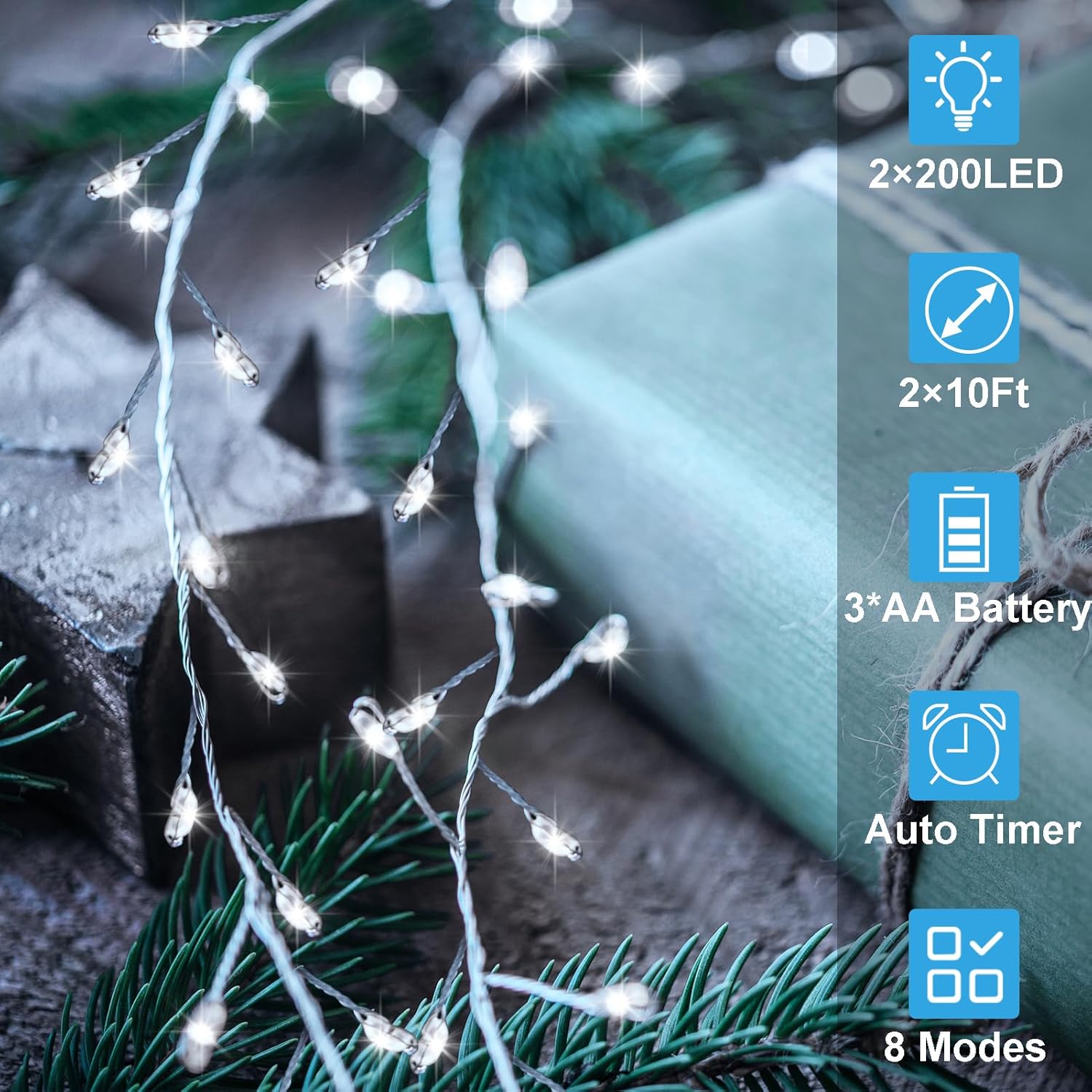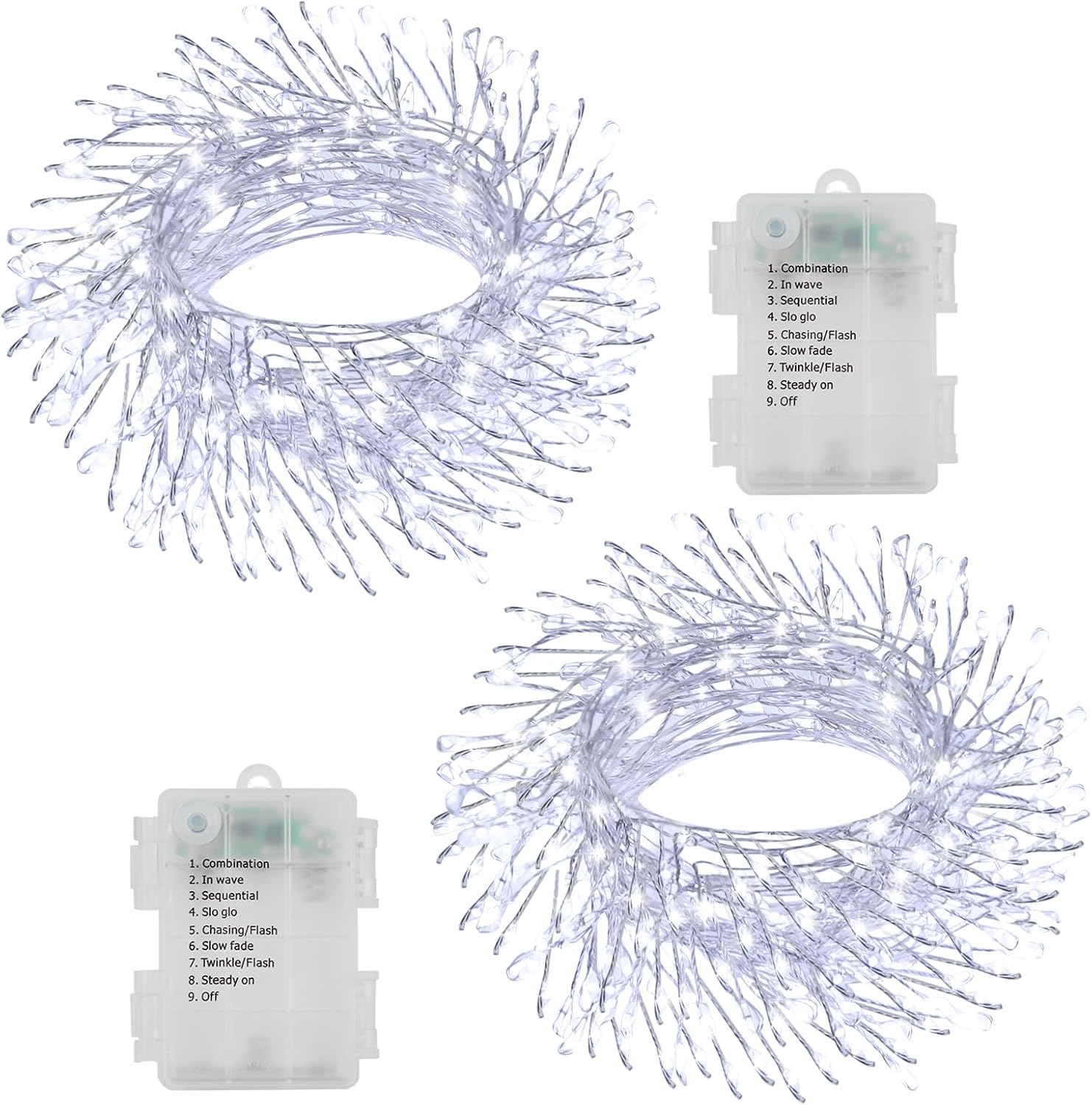 2 Pack Cluster Fairy Lights Battery Operated, Total 20Ft 400 LED Christmas Lights String with Timer 8 Modes Firecracker Fairy Lights Waterproof for Wreath Tree Wedding Gift Decor (Cool White)