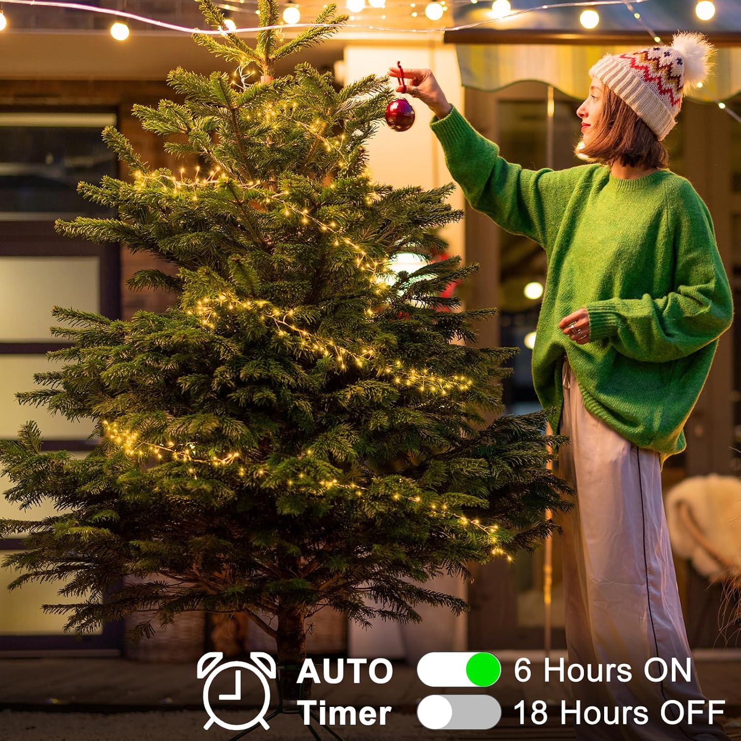 - AUTO Timer: Timer enabled by default, no need to set (6 hour ON, 18 hour OFF, 24-hour cycle). You can achieve the settings once the lights be turned, fairy lights with timer is the perfect holiday decoration