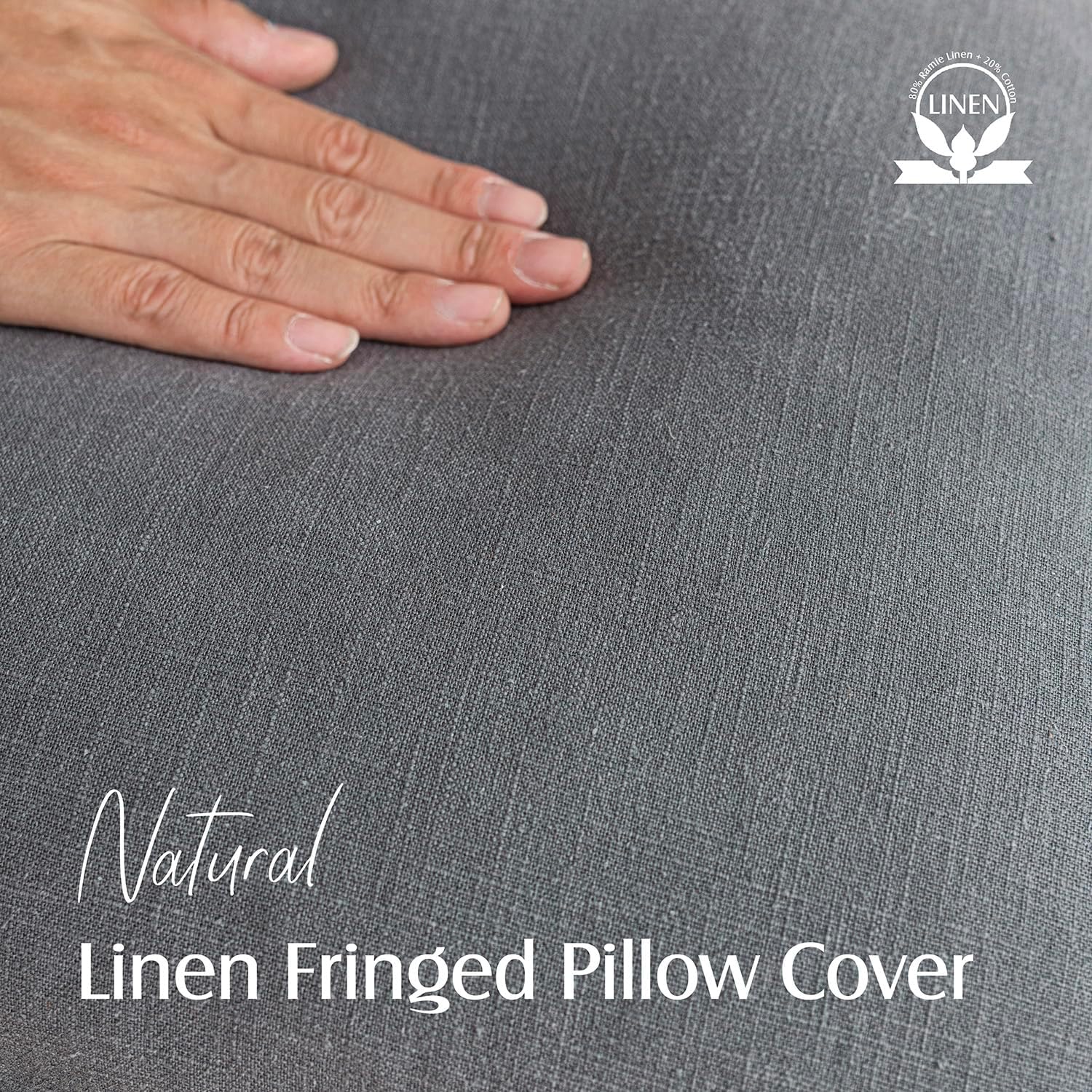 Foindtower Set of 2 Decorative Linen Fringe Throw Pillow Covers Cozy Boho Farmhouse Cushion Cover with Tassels Soft Accent Pillowcase for Couch Sofa Bed Living Room Home Decor, 24×24 Inch, Gray