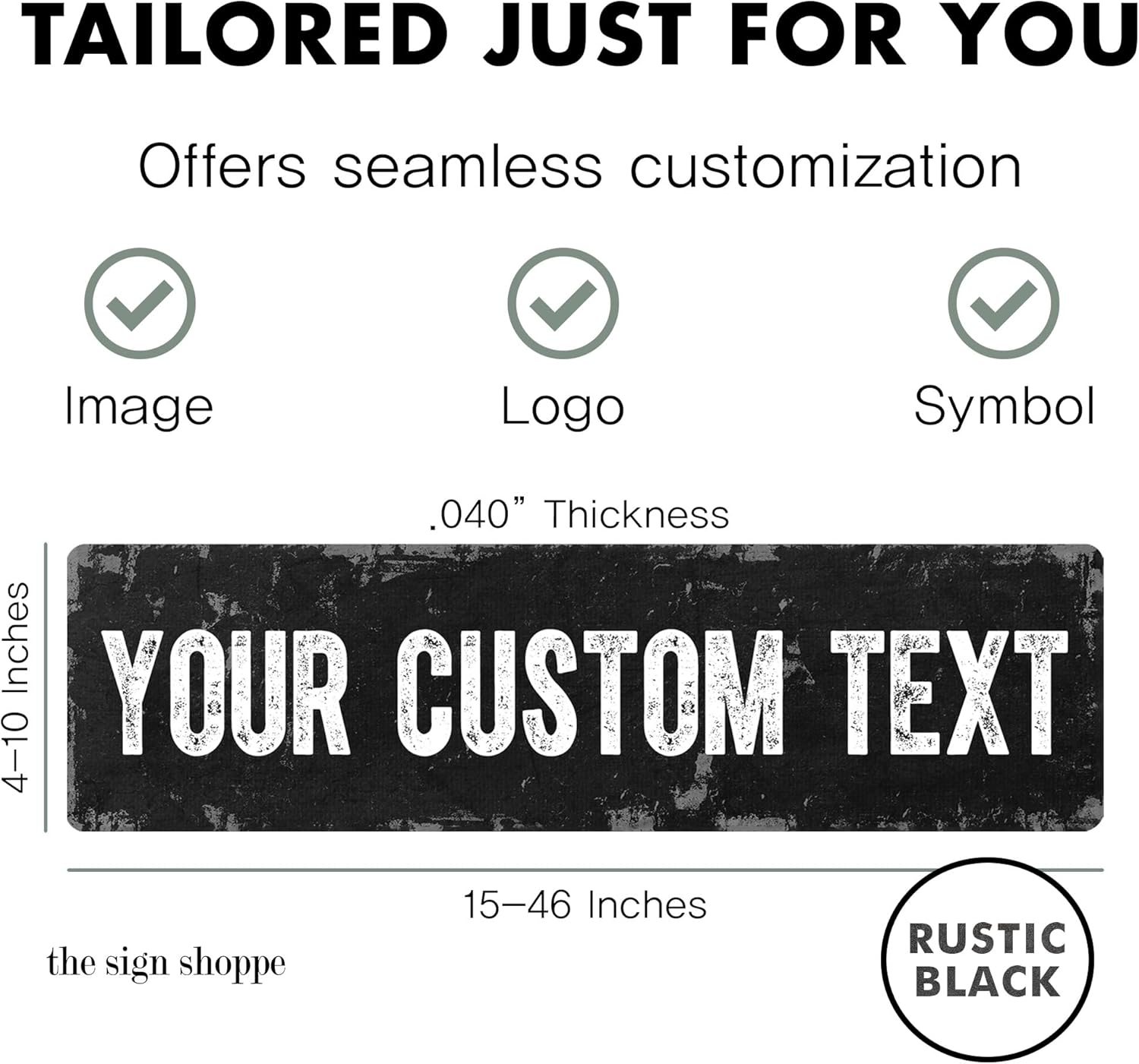 Rustic Custom Metal Sign - Custom Sign for Indoor or Outdoor Use (Rustic Black, 15x15 inches)