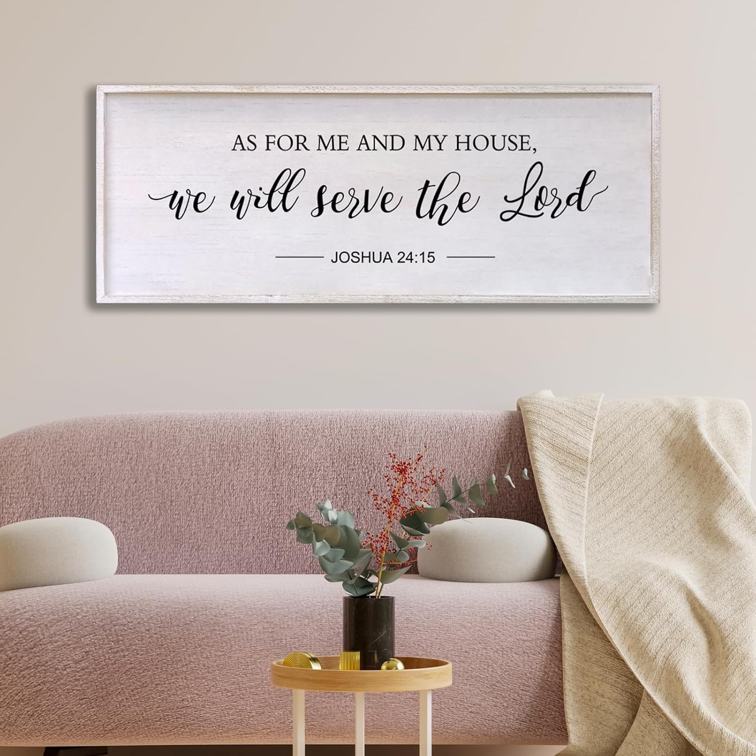 As for Me and My House We Will Serve the Lord Wall Decor - 32" x 12" Large Rustic Family Living Room Wood Framed Home Sign Joshua 24 15 Christian Bible Verse Plaque Hanging Wall Art(White)