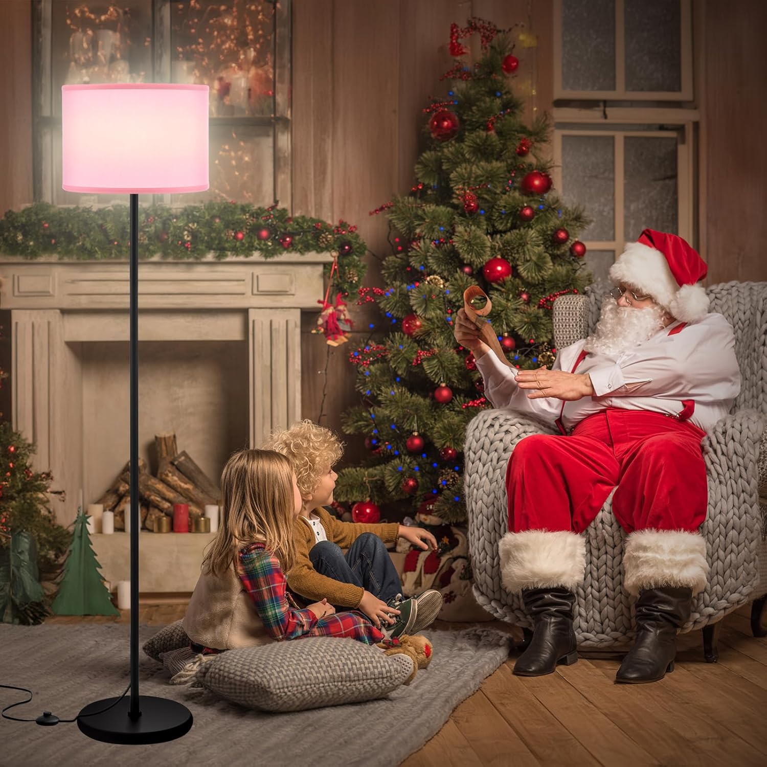 Ambimall 60'' Modern Floor Lamp with Shade, Tall Lamps for Living Room, Bedroom, Office, Dining Room, Pink Shade with Black Pole(Without Bulb)