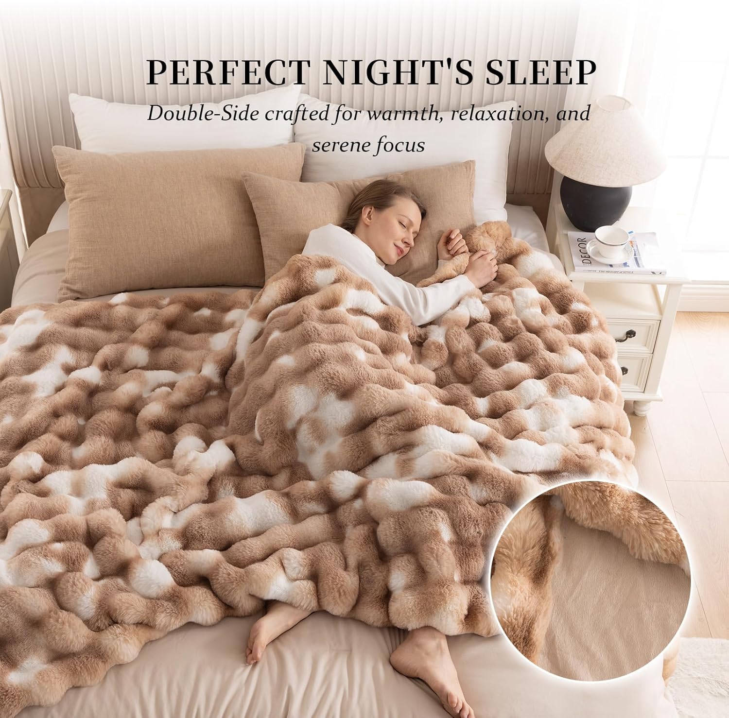- Ultra-Soft Dual-Layer Comfort: Experience cloud-like softness with our bubble faux fur throw blanket, Combining a fluffy faux fur exterior with an ultra-soft microfleece interior, this blanket delivers a truly luxurious tactile experience. Designed for year-round comfort offers breathable warmth and sumptuous coziness in every season