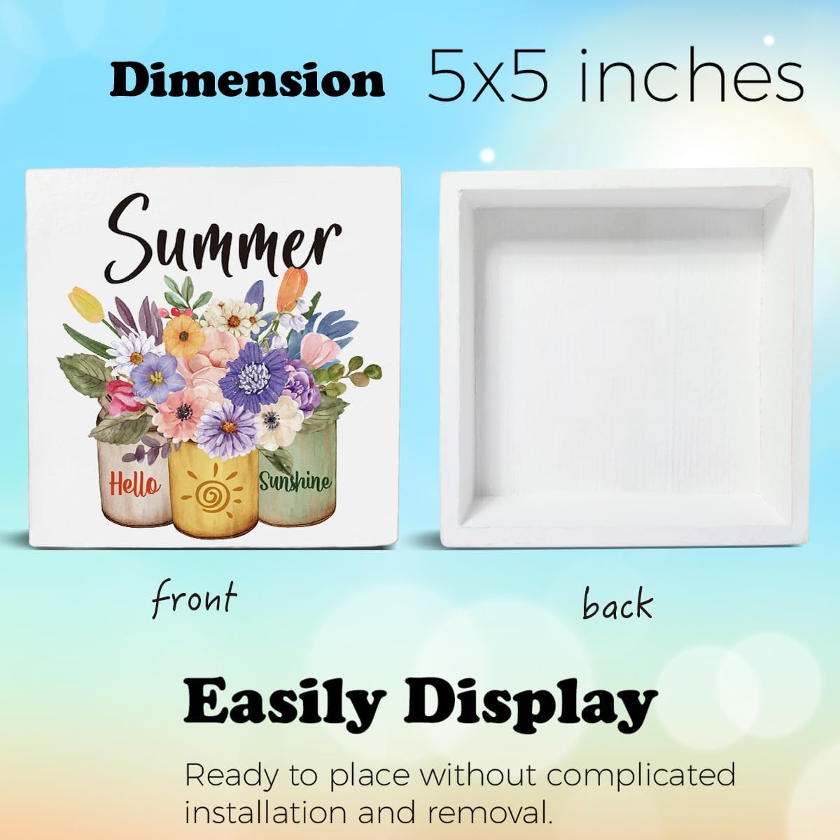Summer Decor Farmhouse Summer Decorations Hello Sunshine Wooden Sign Rustic Home Decor 5 x 5 Inches