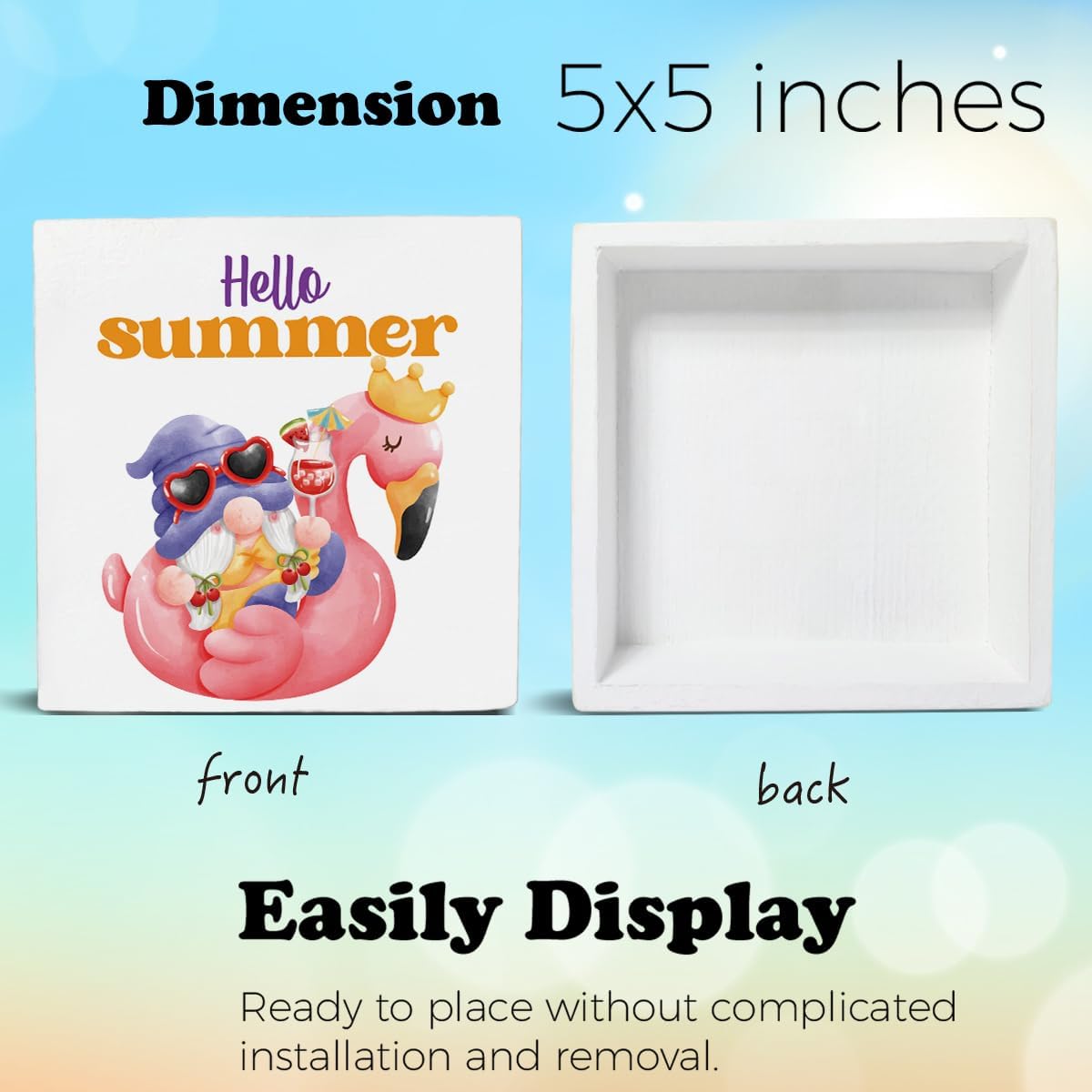 Hello Summer Decor Flamingo Decorations Summer Gnome Wooden Sign Rustic Home Decor 5 x 5 Inches
