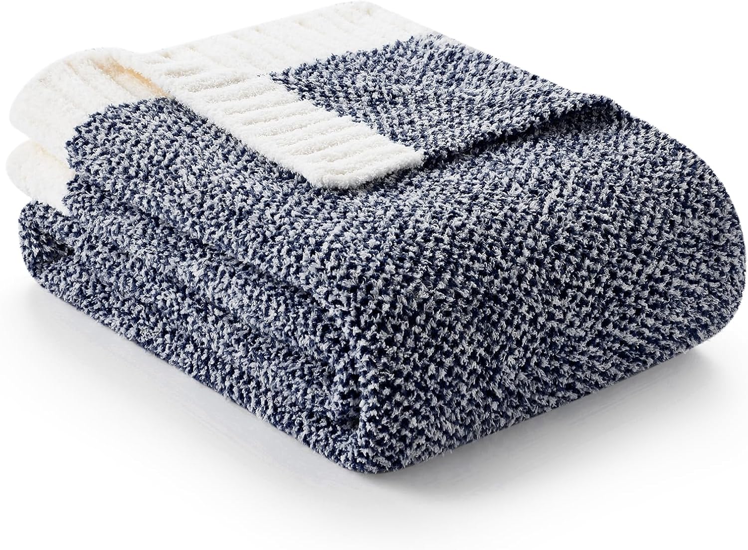 Snuggle Sac Heather Navy Twin Size Blankets, Super Soft Microfiber, Warm Cozy Knit Fuzzy Plush Blankets for Sofa, Bed, Living Room, Navy, 60x80 inches