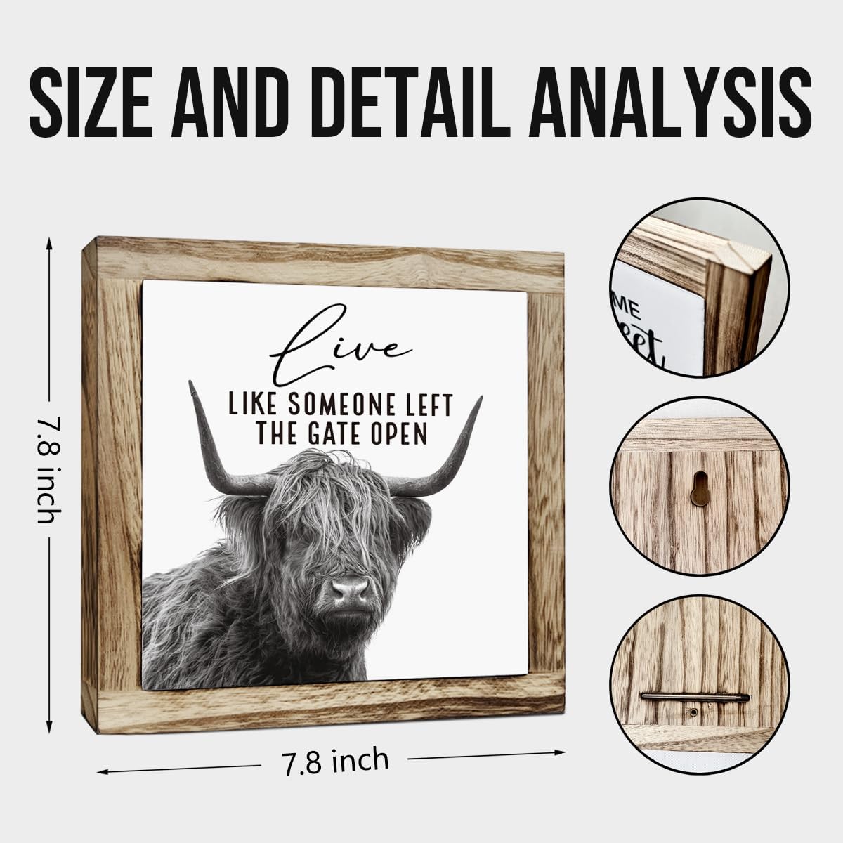 Funny Wood Sign, Cow Decor, Wooden Plaques Sign Table Decoration, Farmhouse Decorate for Shelf, Country Style Home Decor, Inspirational Decorate Signs, Live Like Someone Left the Gate Open Signs