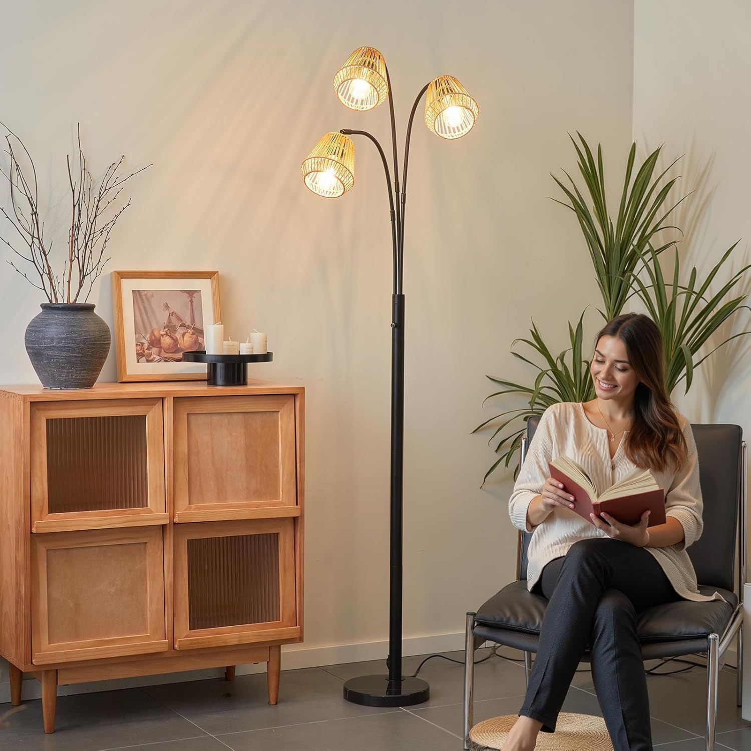 - 【Your Light, Your Rules】Isn't the convenience of a 3 light floor lamps for living room with a rotary switch for varying brightness levels a game-changer for any mood? Why not choose a boho standing lamp that caters to every mood and setting with ease and sophistication?
