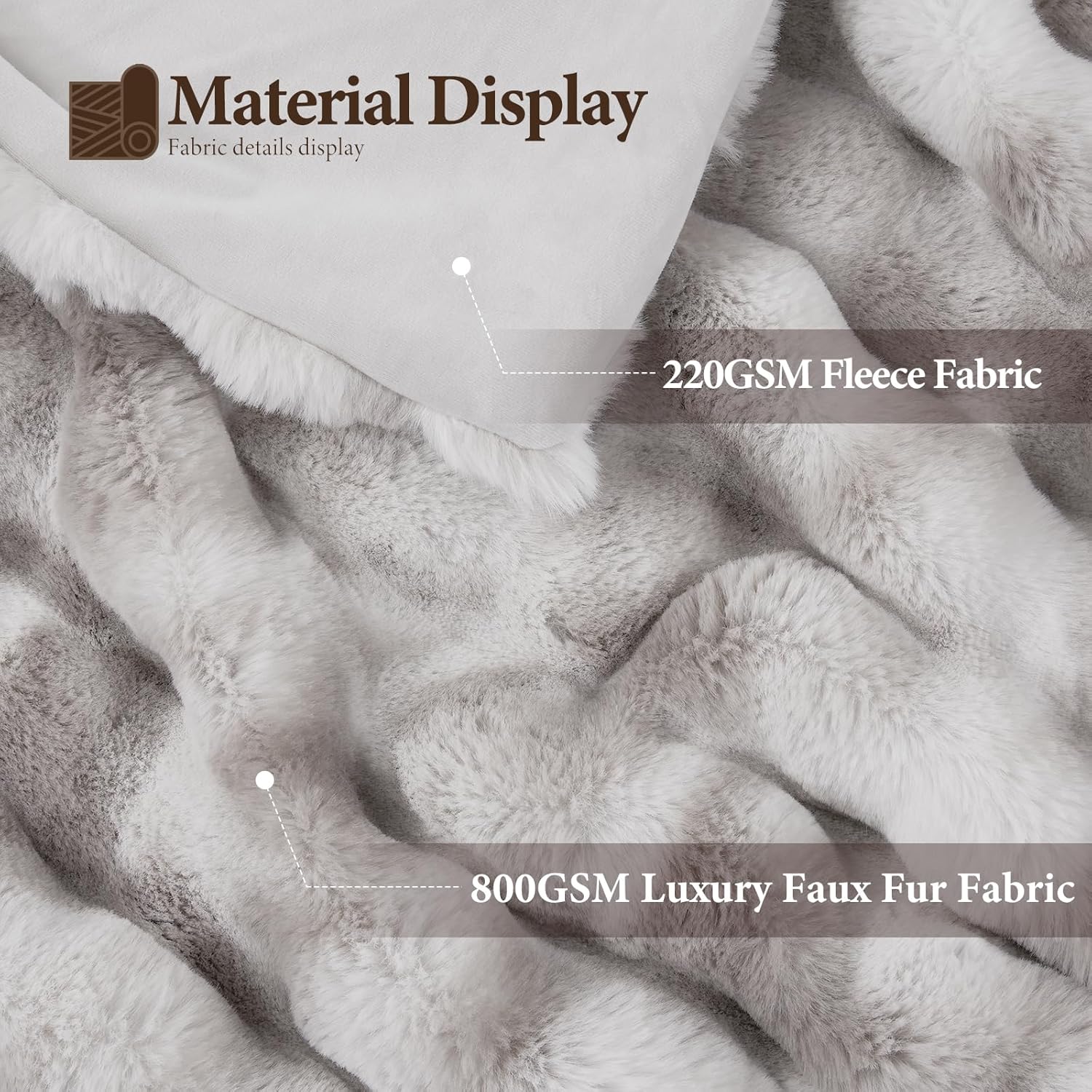 Touchat Luxury 1000GSM Faux Rabbit Fur Throw Blanket, Super Heavy Warm Cozy Grey Blankets for Couch Bed Sofa, Ruched Plush Fuzzy Elegant Soft Reversible Mink Blanket for Living Room Bedroom
